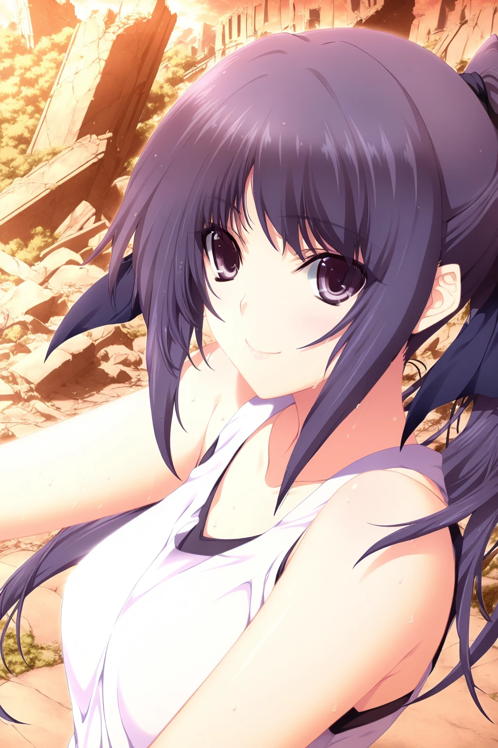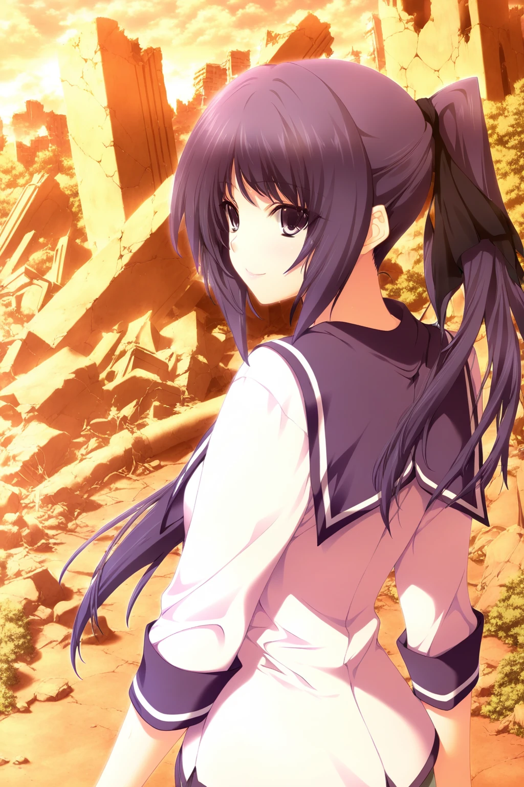 aya-inubousaki, Iizuki Tasuku, ponytail, long hair, purple hair, ribbon, hair ribbon, brown eyes, purple eyes, black hair