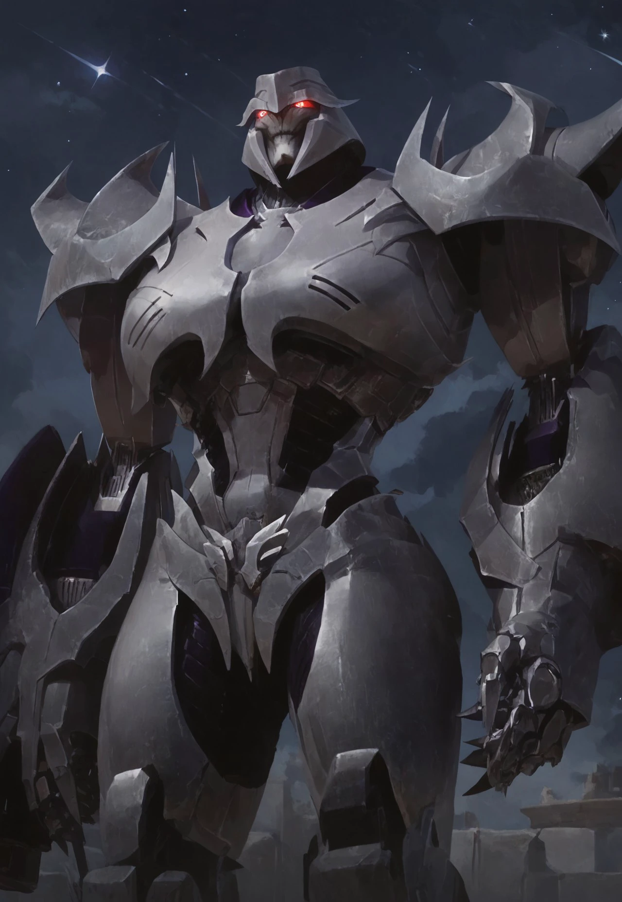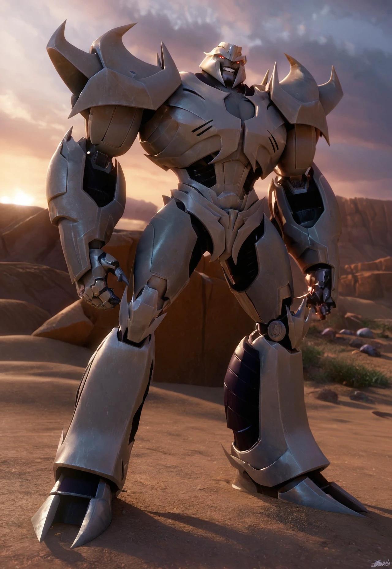 Megatron_tfp, Transformer, Robot, Sharp teeth, claws, red eyes, glowing eyes, Armor, Gray body, metal,