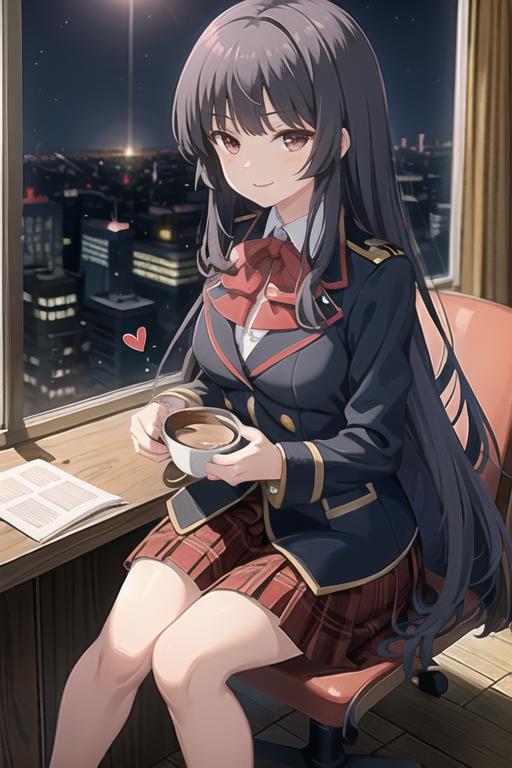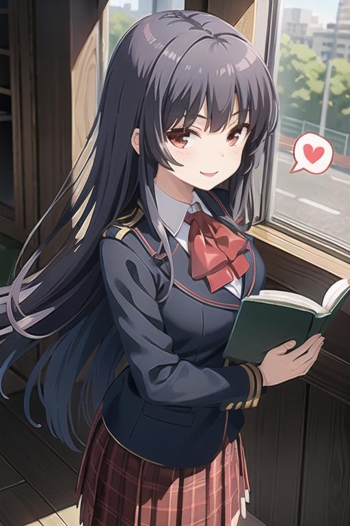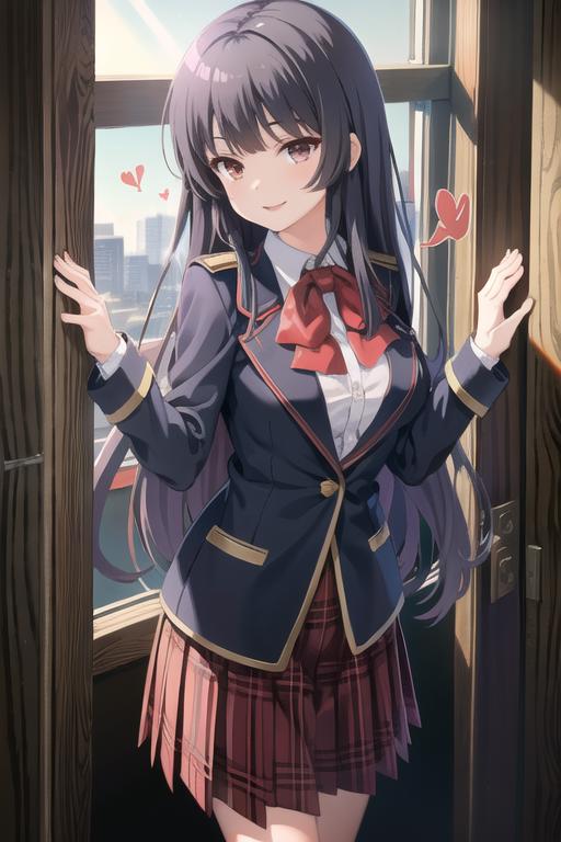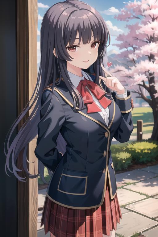 Default Outfit: school uniform, jacket, red bow, plaid skirt, pantyhose