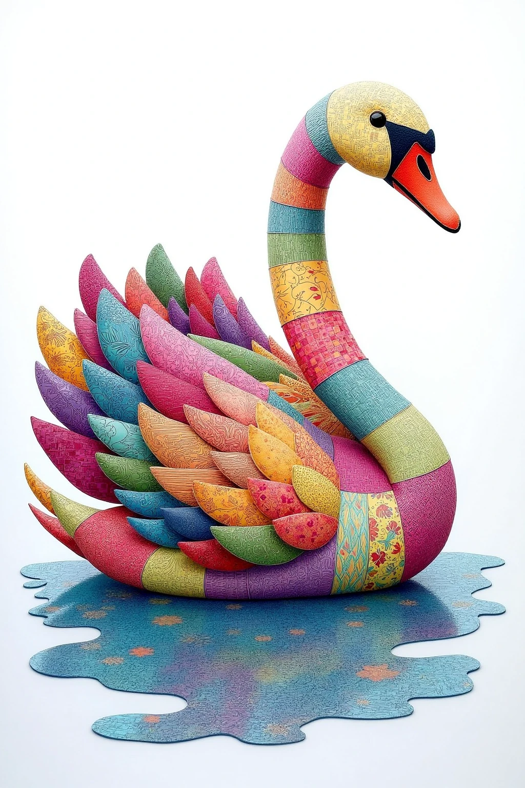 7. Colorful patchwork patterns, draw a noble swan, patchworks creating its graceful swimming look.