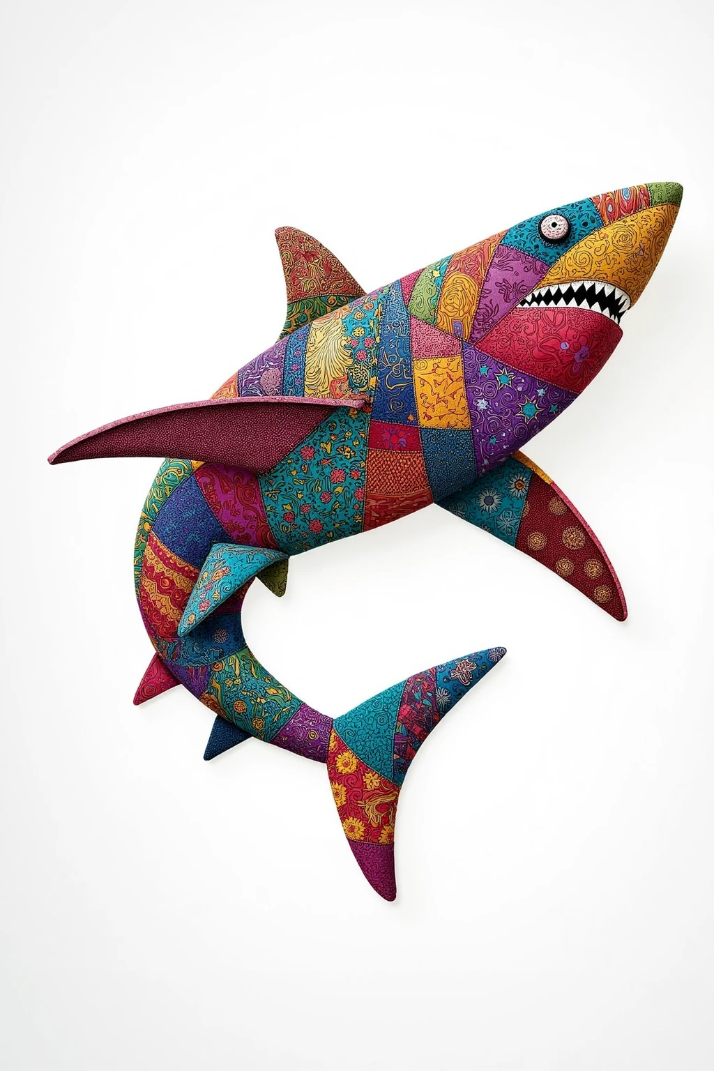5. Colorful patchwork patterns, build a mighty shark, colorful patchworks composing its fierce outline.