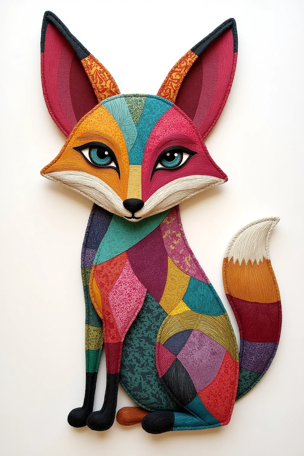10. Colorful patchwork patterns, create a big - eared fox, patchworks making its cute and alert appearance.