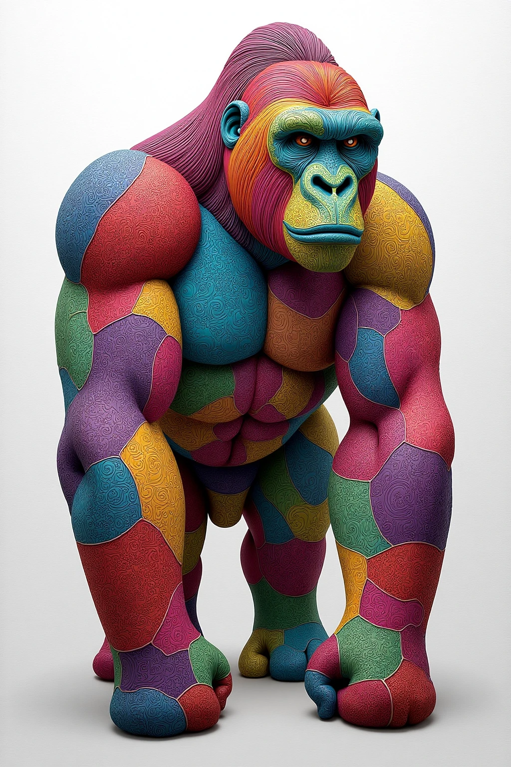 8. Colorful patchwork patterns, form a strong gorilla, patchworks shaping its powerful figure.