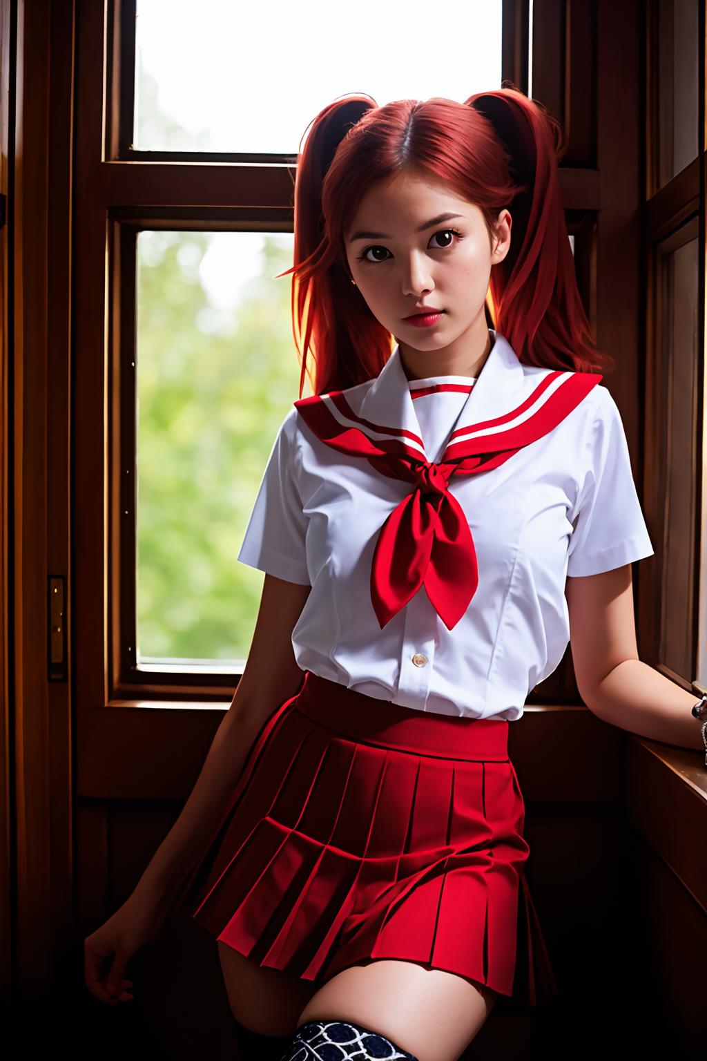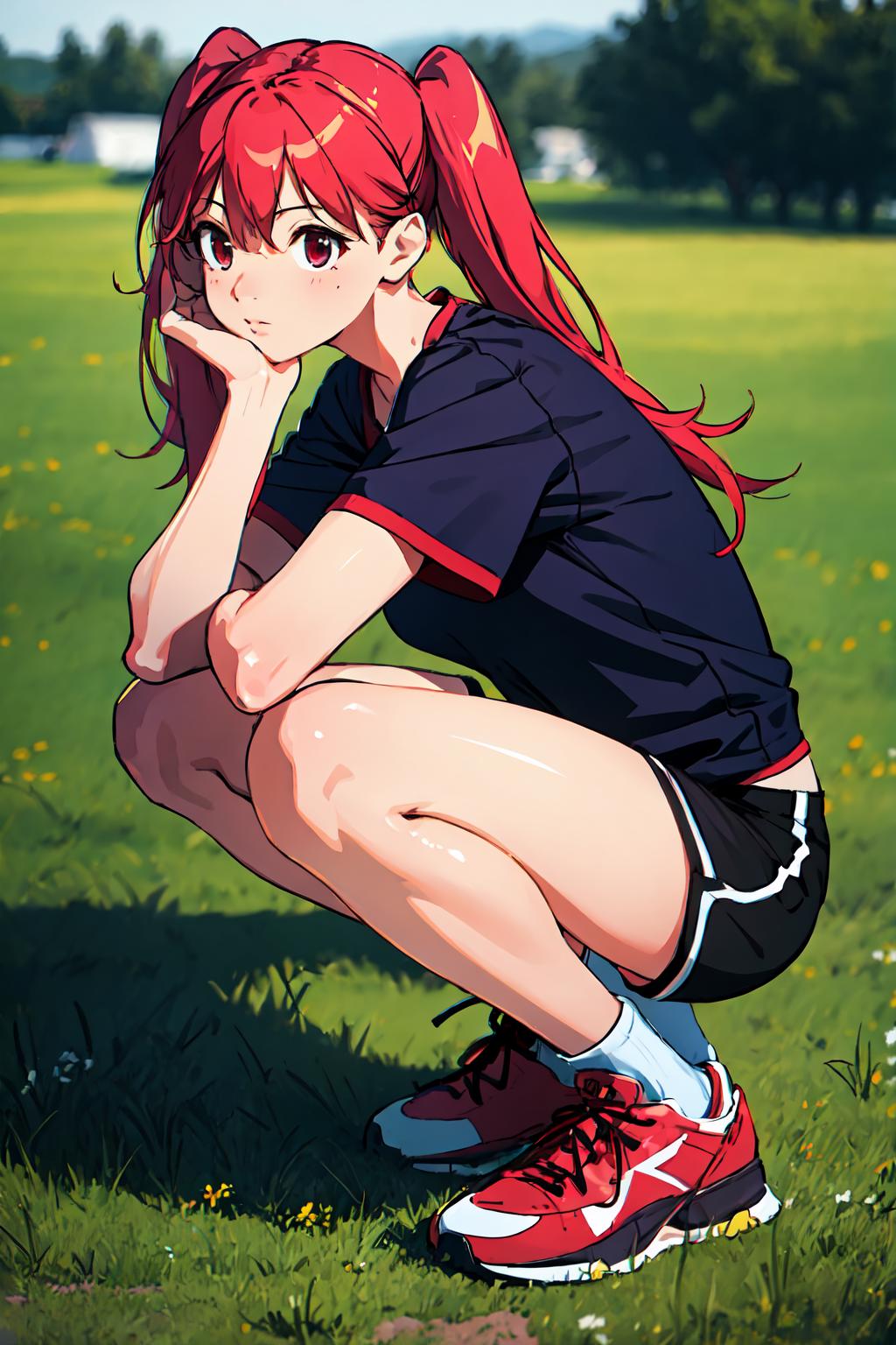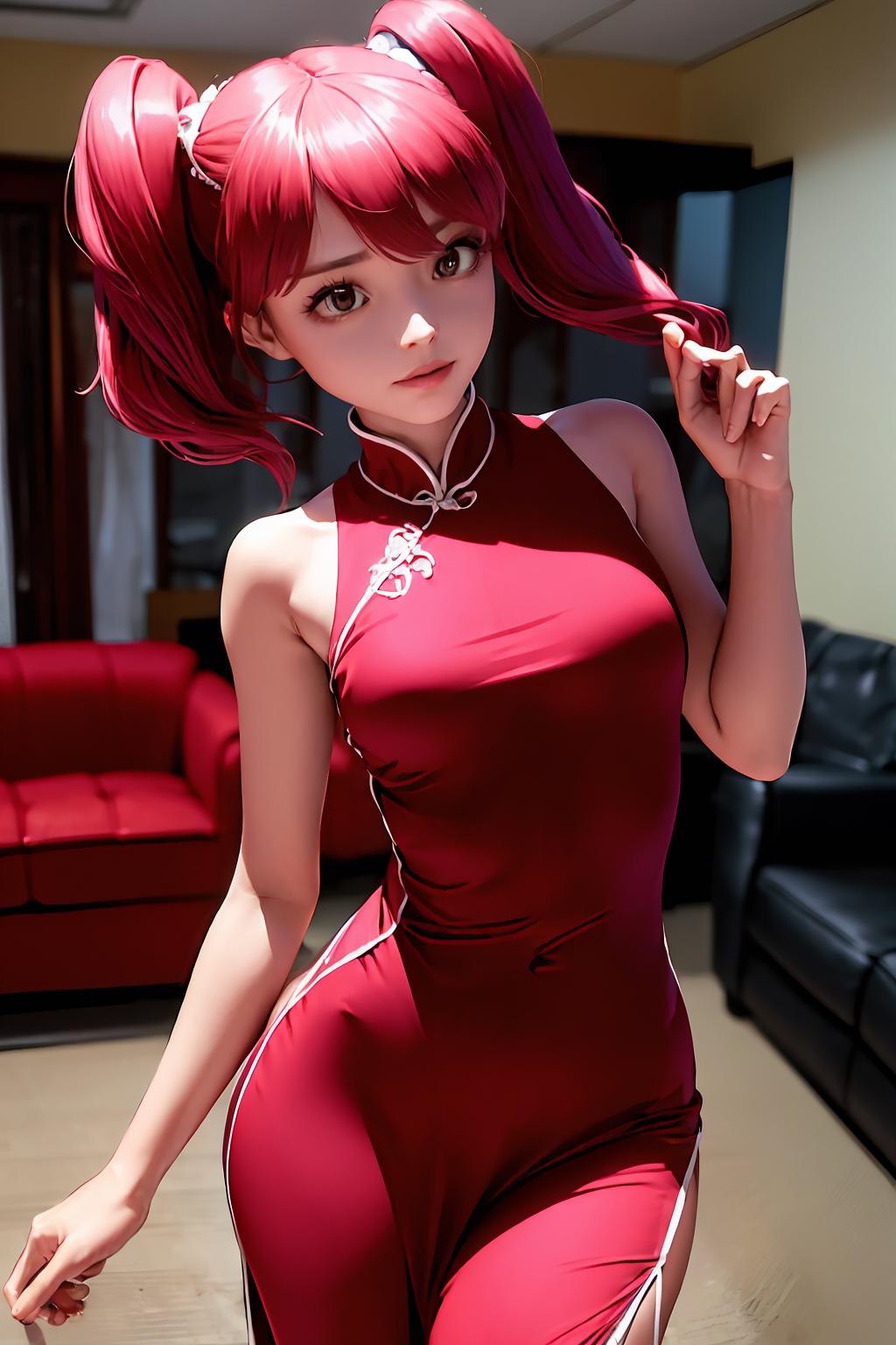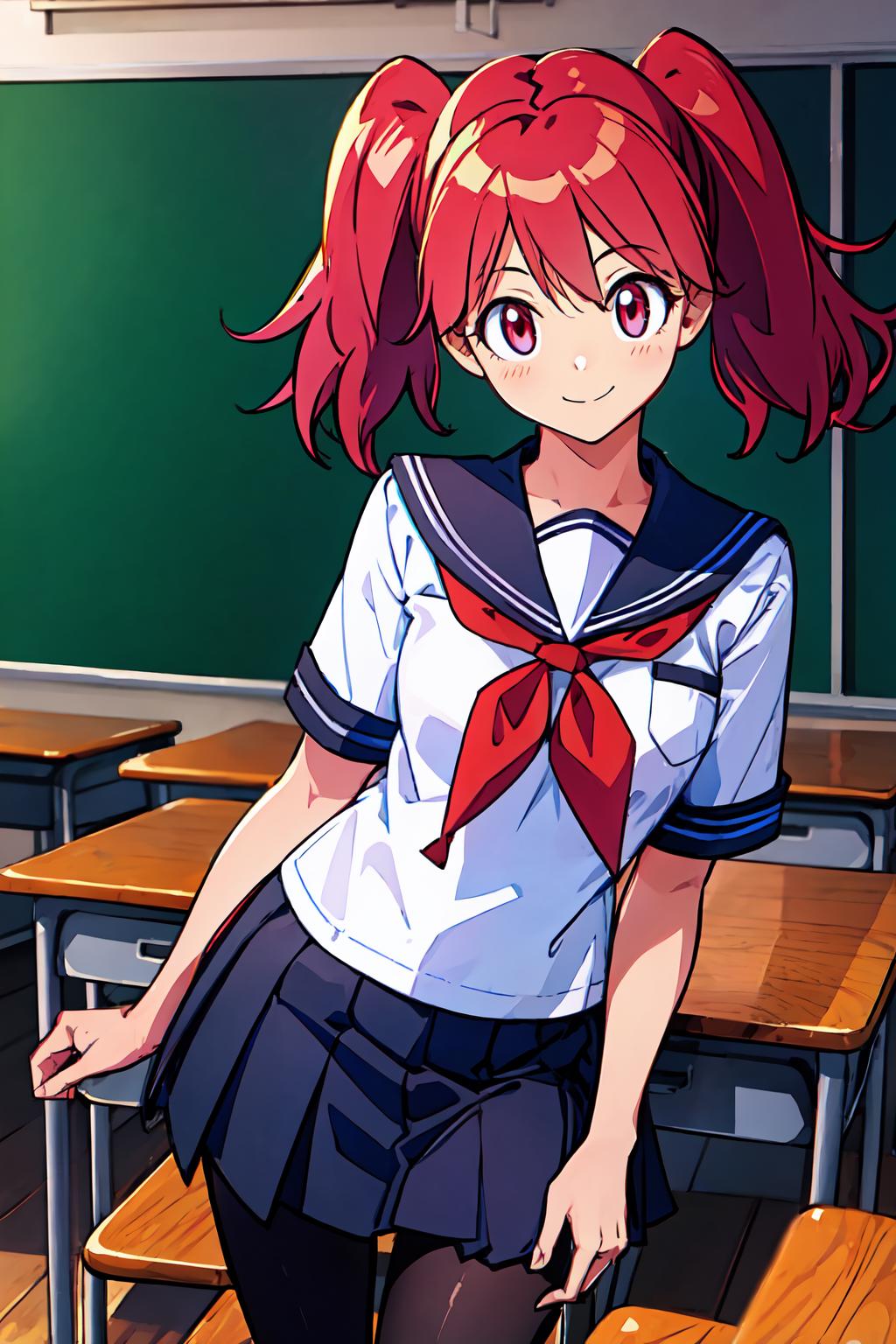 Additional Prompts: red eyes, red hair, twintails