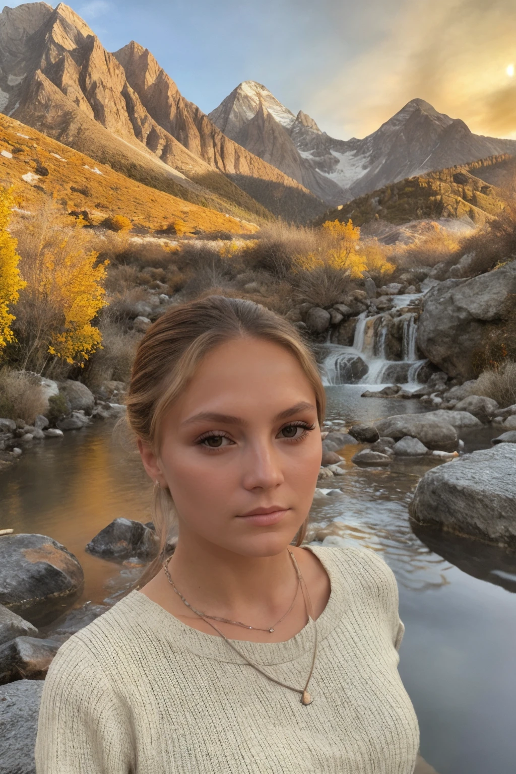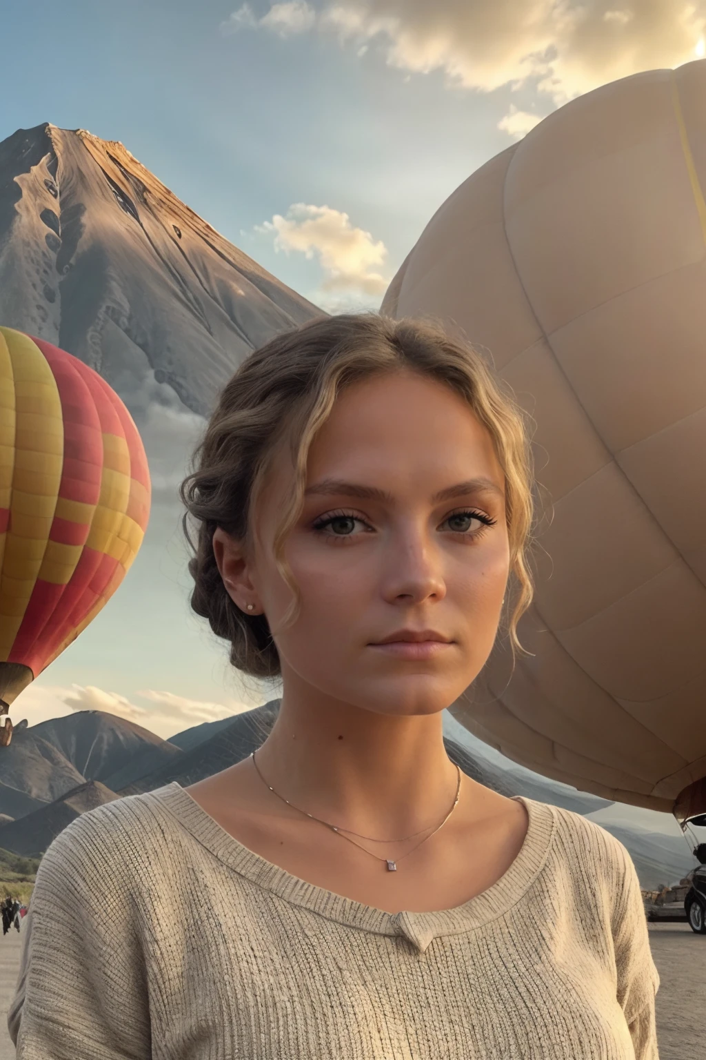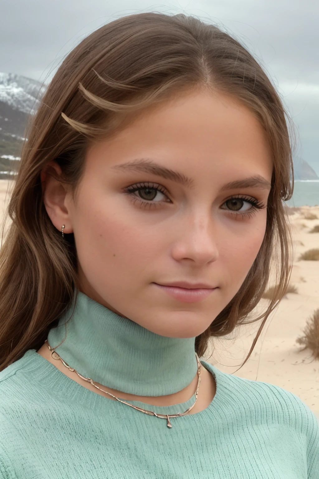 high cheekbones,narrow face,slim,petite,brown hair,blond highlights in hair,wavy hair,brown eyes,woman,beautiful,