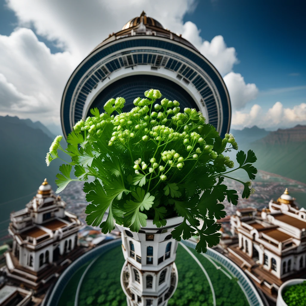 world of coriander leaves and flowers