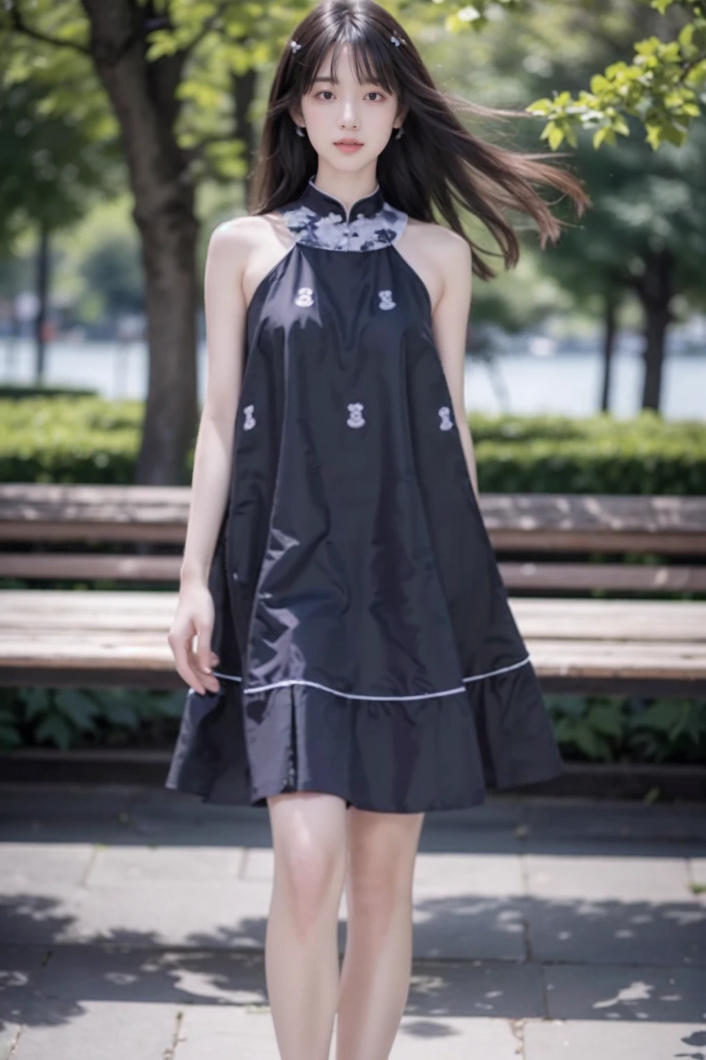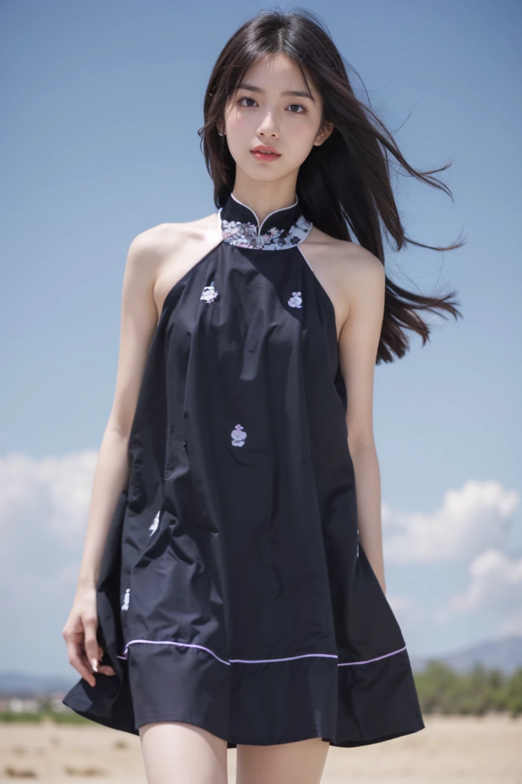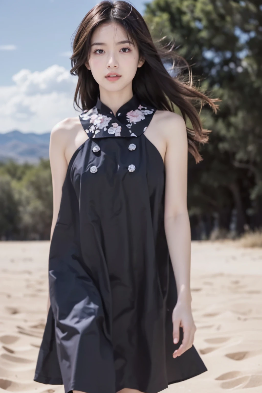 sleeveless dress,black dress, minidress, floral print,bare shoulders