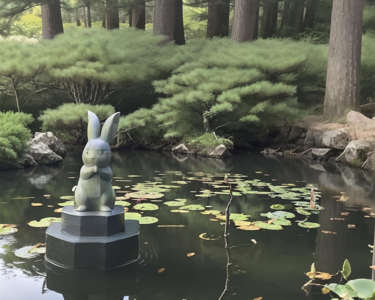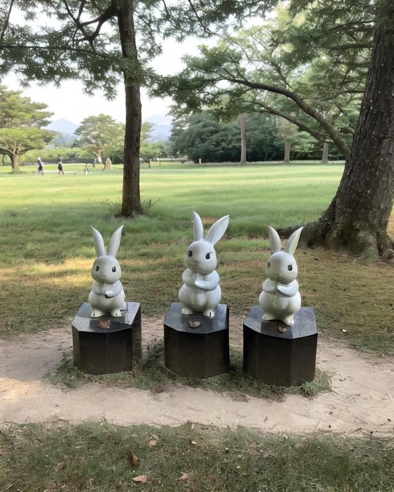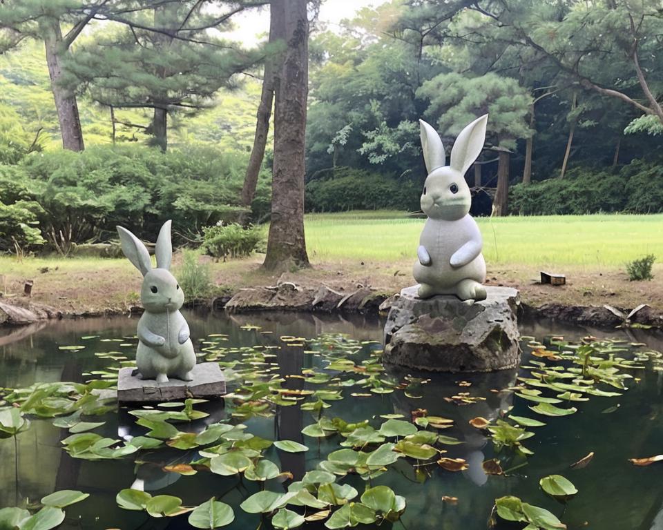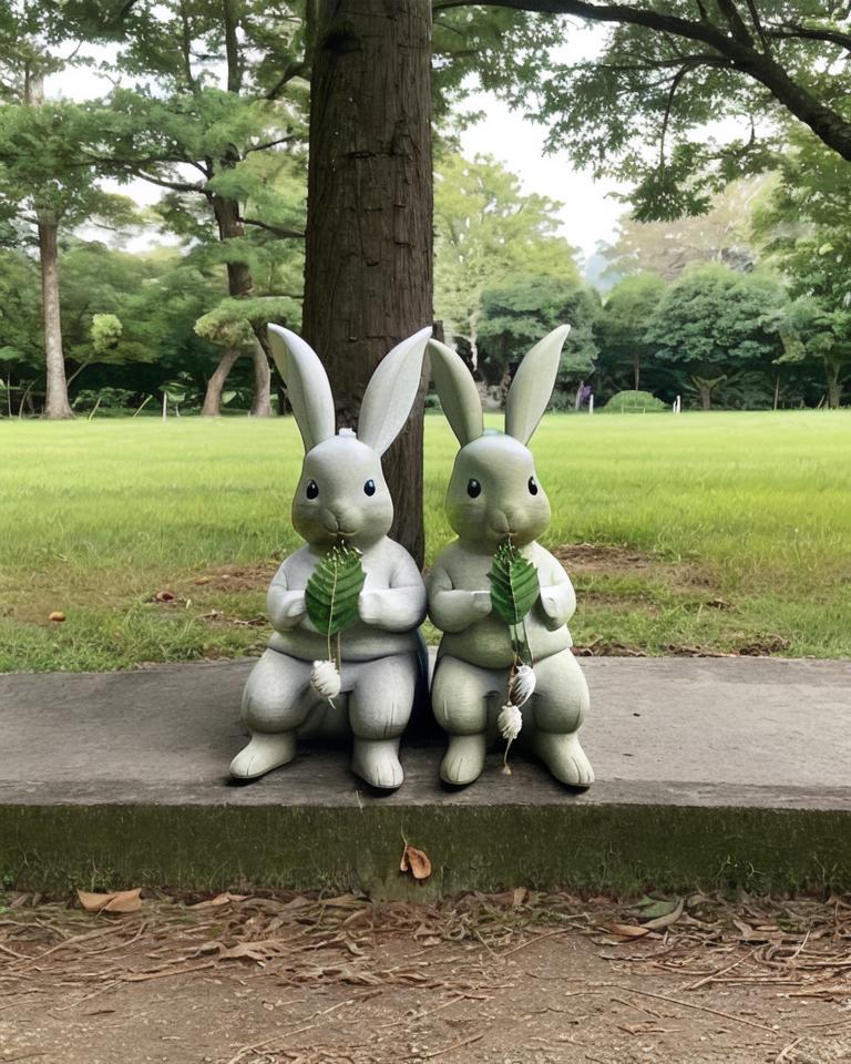 A rabbit figurine made of granite. They often sit on obsidian or basalt plinths.