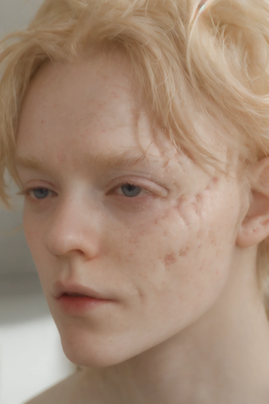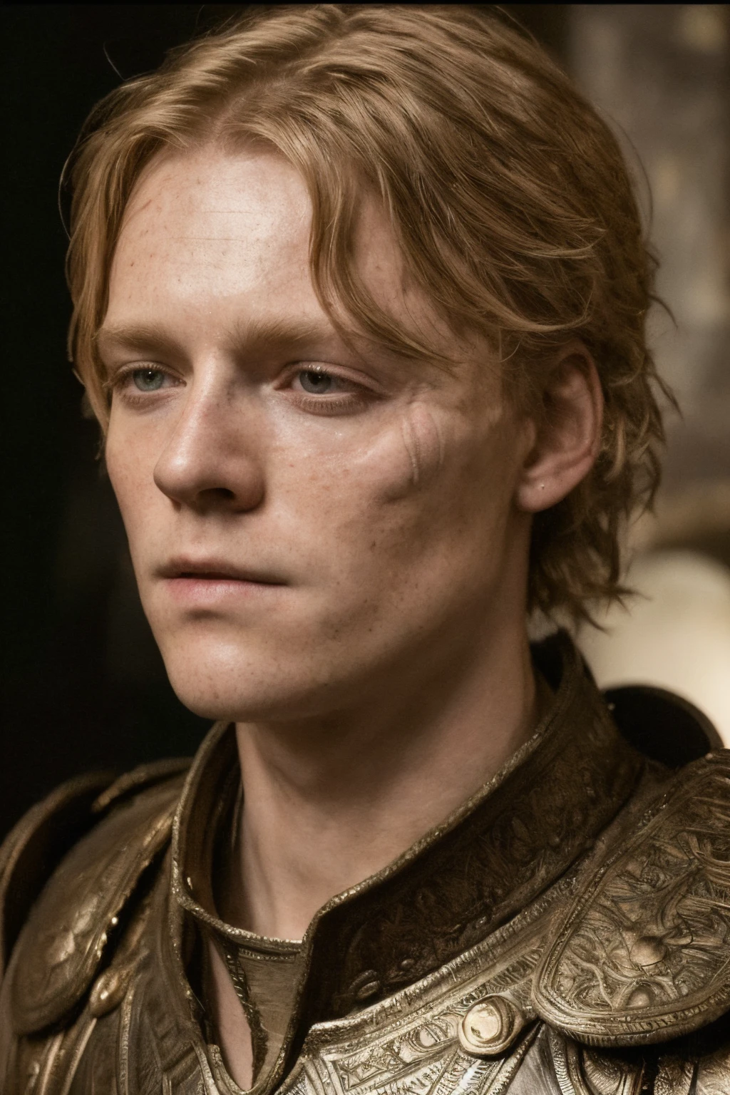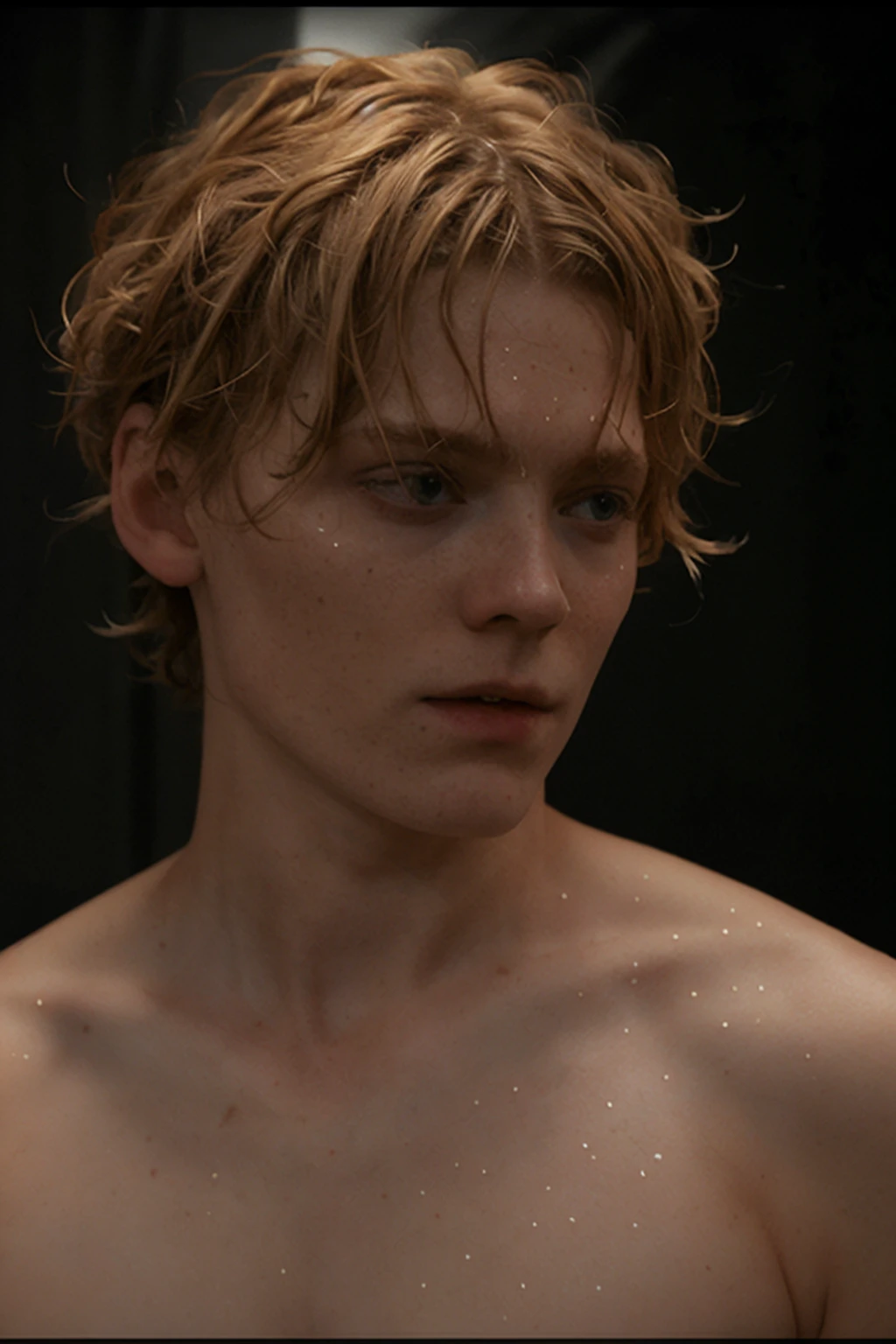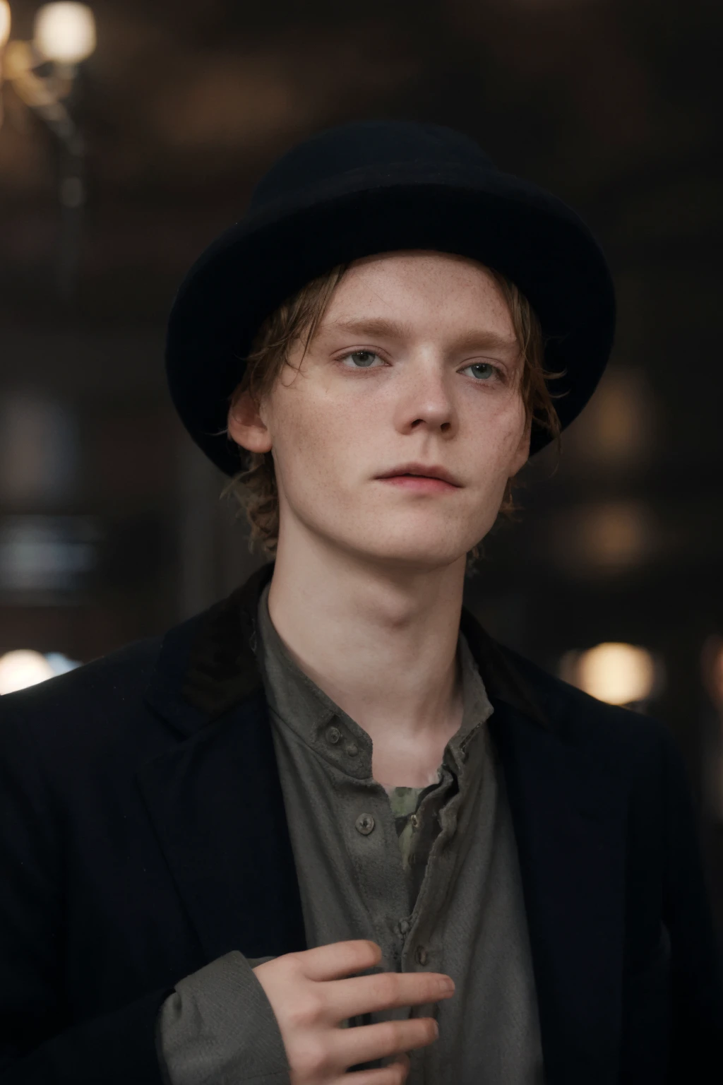Promt example: Krester, blond, men with scar on his cheekbone, solo,short hair,brown hair,shirt,1boy,hat,jacket,upper body,male focus,collared shirt,black jacket,black headwear,scar,looking up,freckles,realistic,horror (theme)