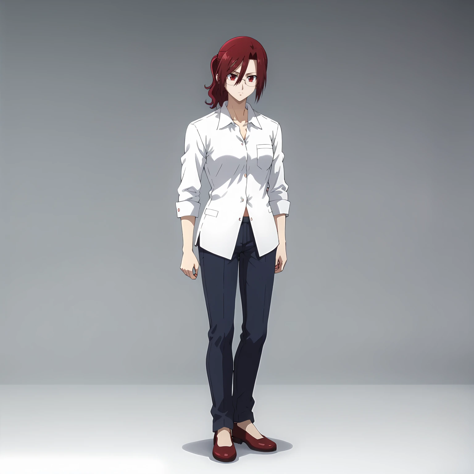 collared_shirt,white shirt,(shirt_tucked_out:1.2), pants,