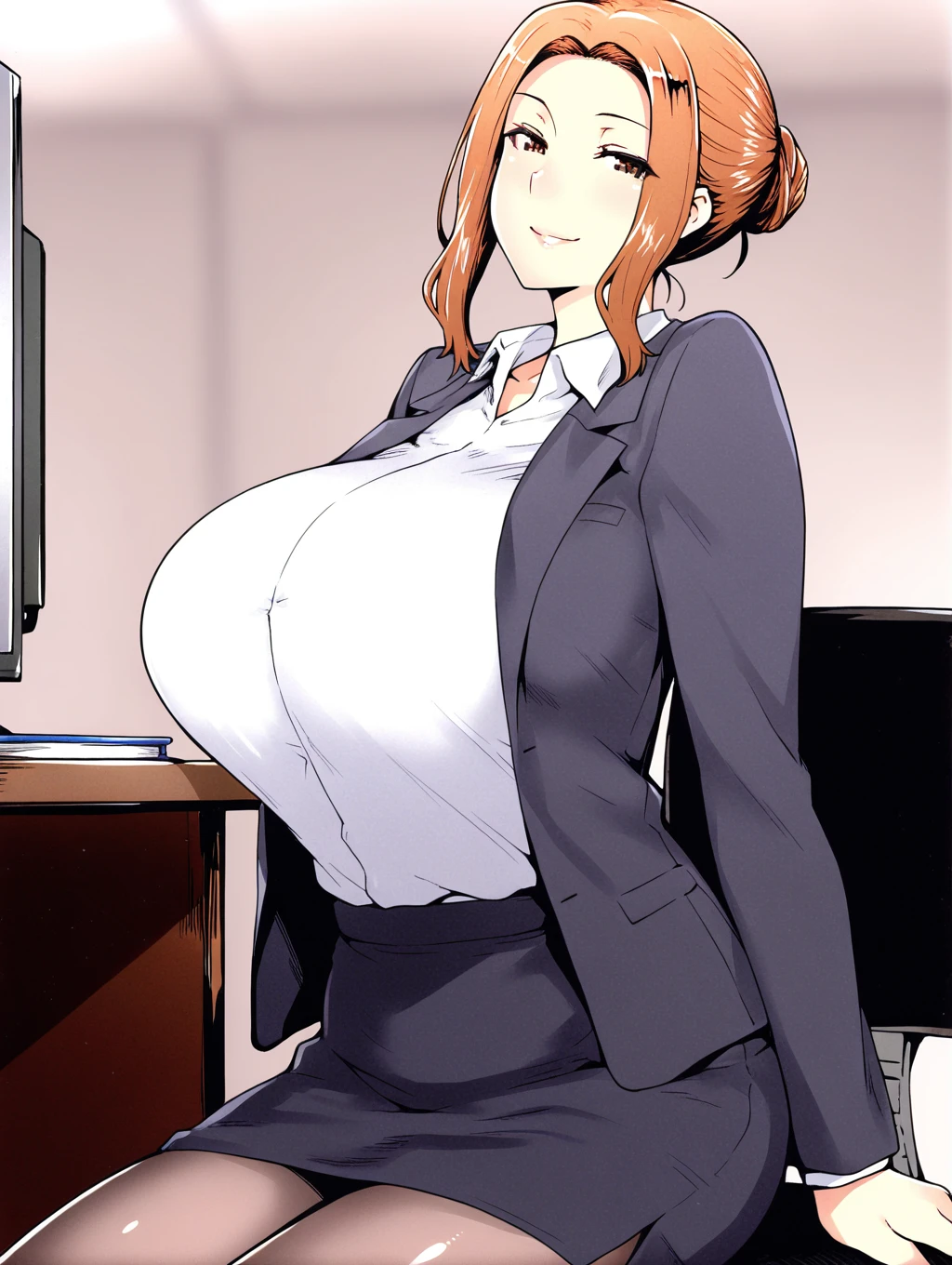 dress shirt,suit jacket,suit skirt,pantyhose,office lady,formal,
