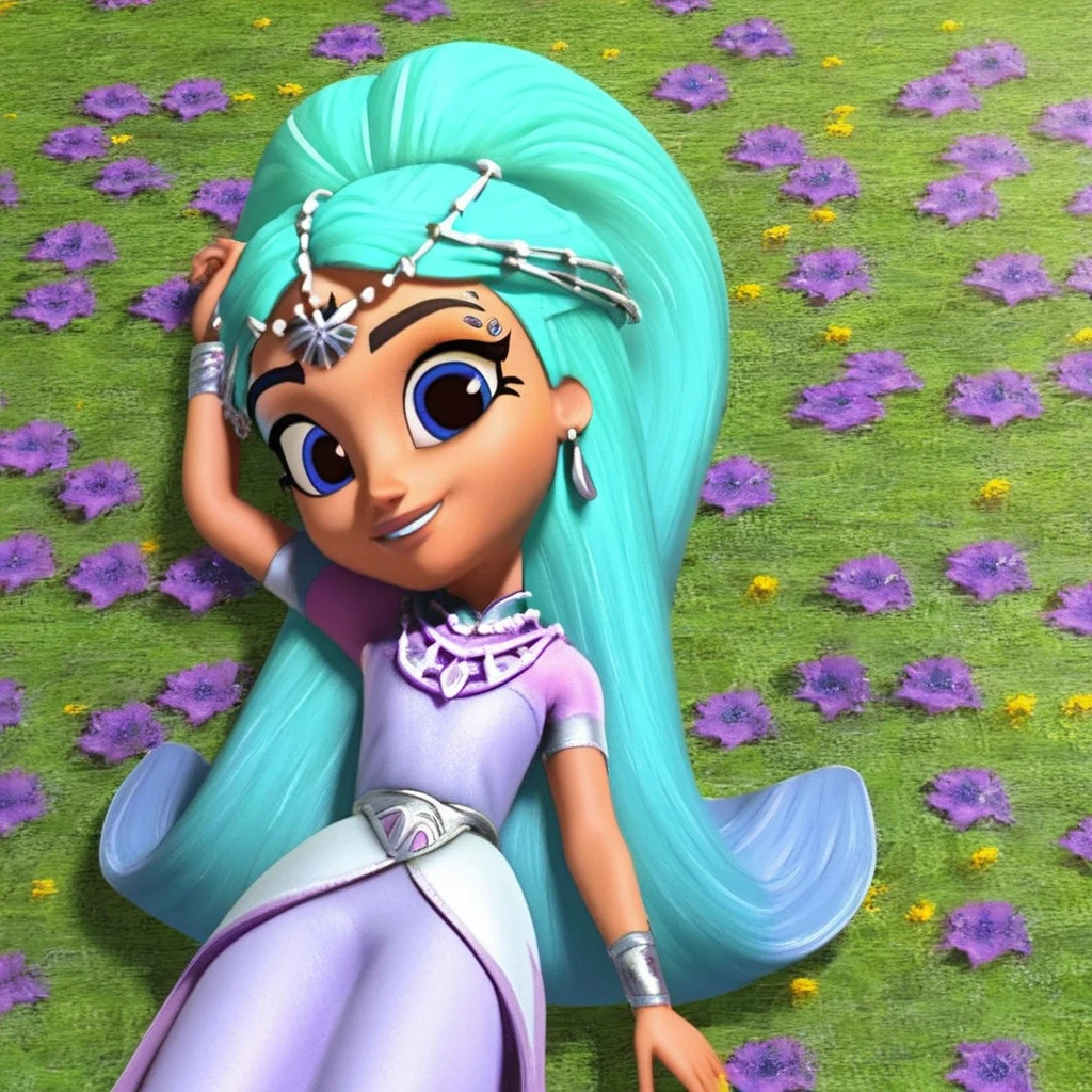 samira_sh, 1girl, dark skin, long hair, turquoise hair, blue eyes, dress, necklace, earrings, wristband