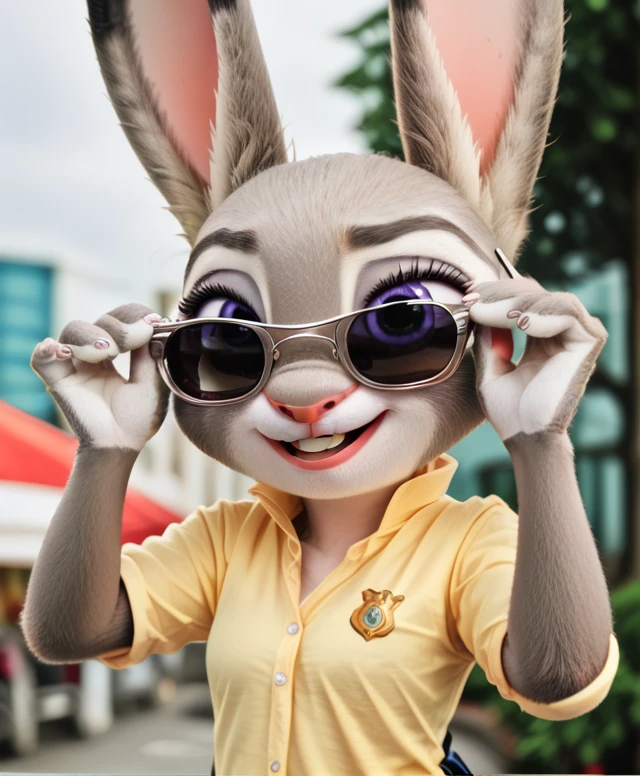 Add this to your prompt as a trigger: "pulling down sunglasses" or "pulling sunglasses down".