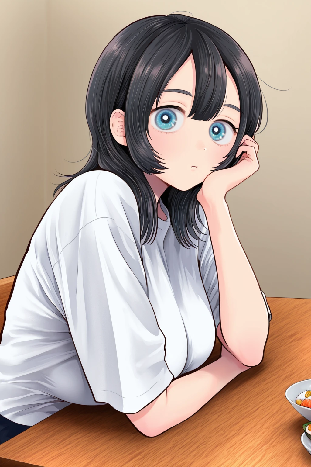 sushi_karma,black_hair, blue_eyes, medium_hair