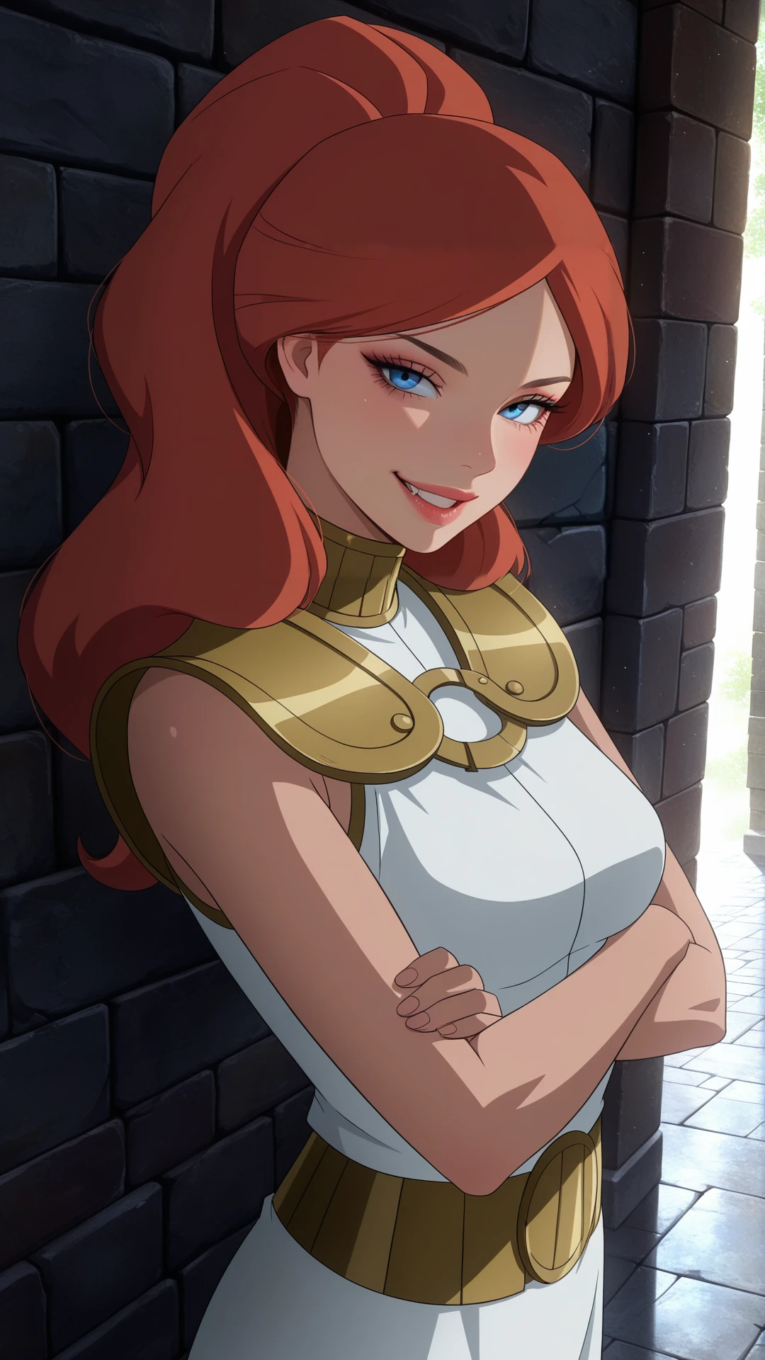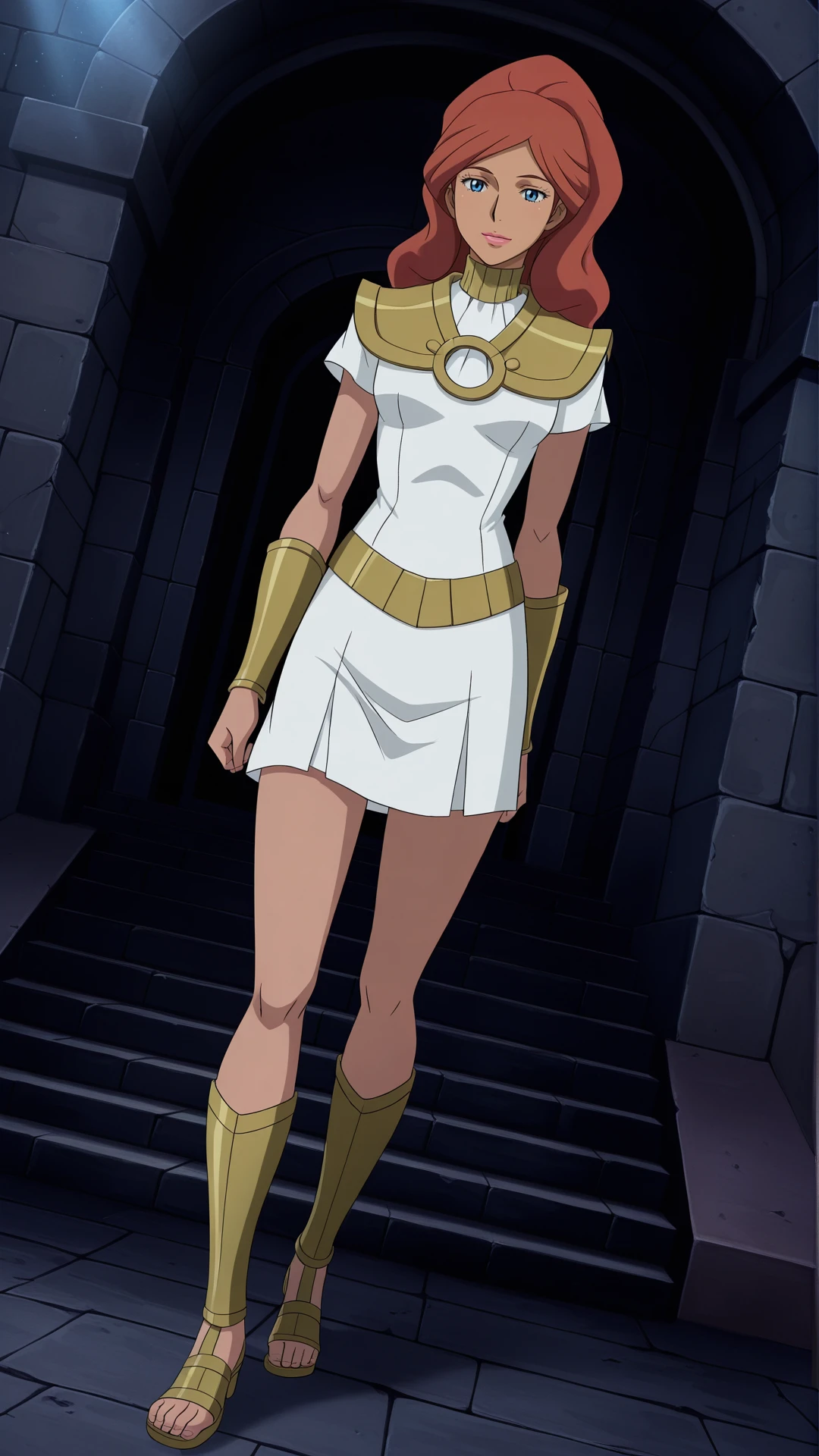 Layered Dress, White Dress, Bronze Collar, Bronze Belt, Short Dress, Bronze Stripe, Pauldron