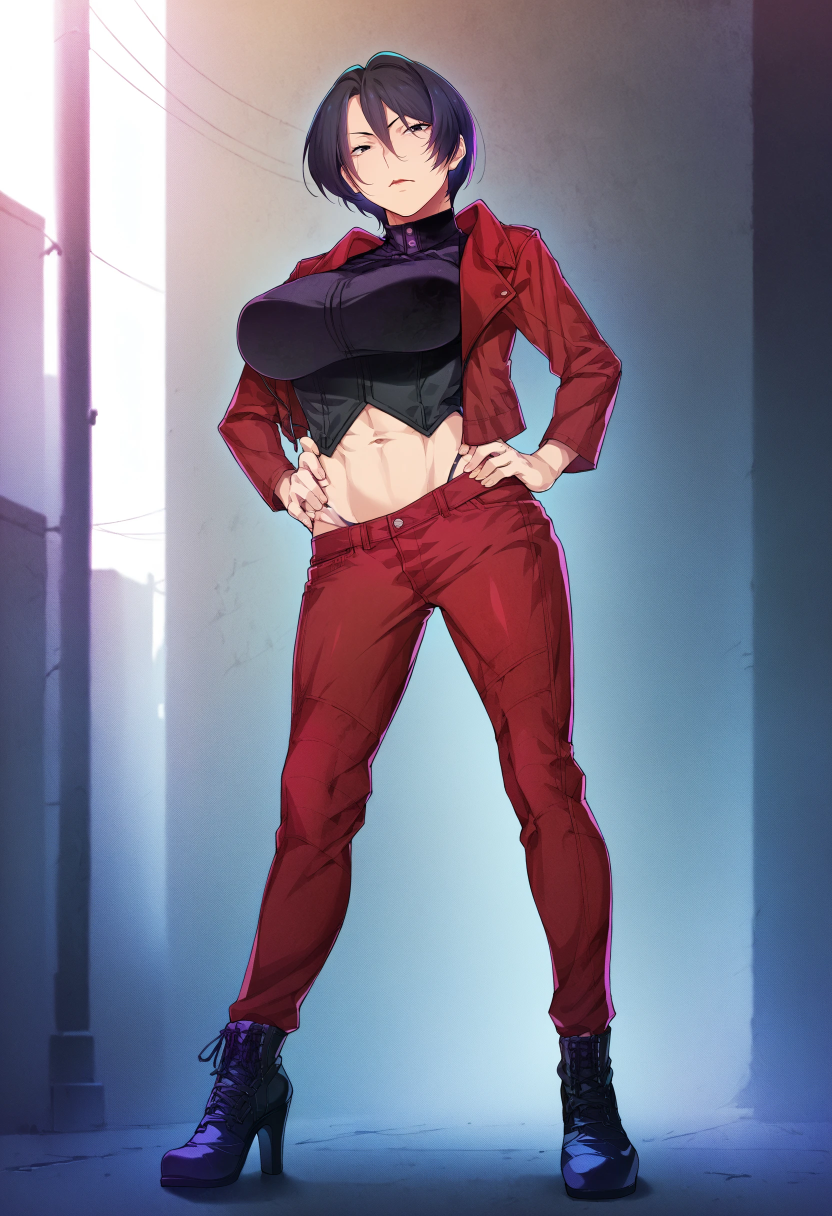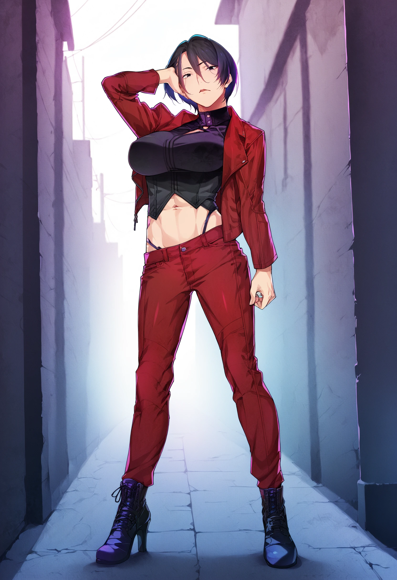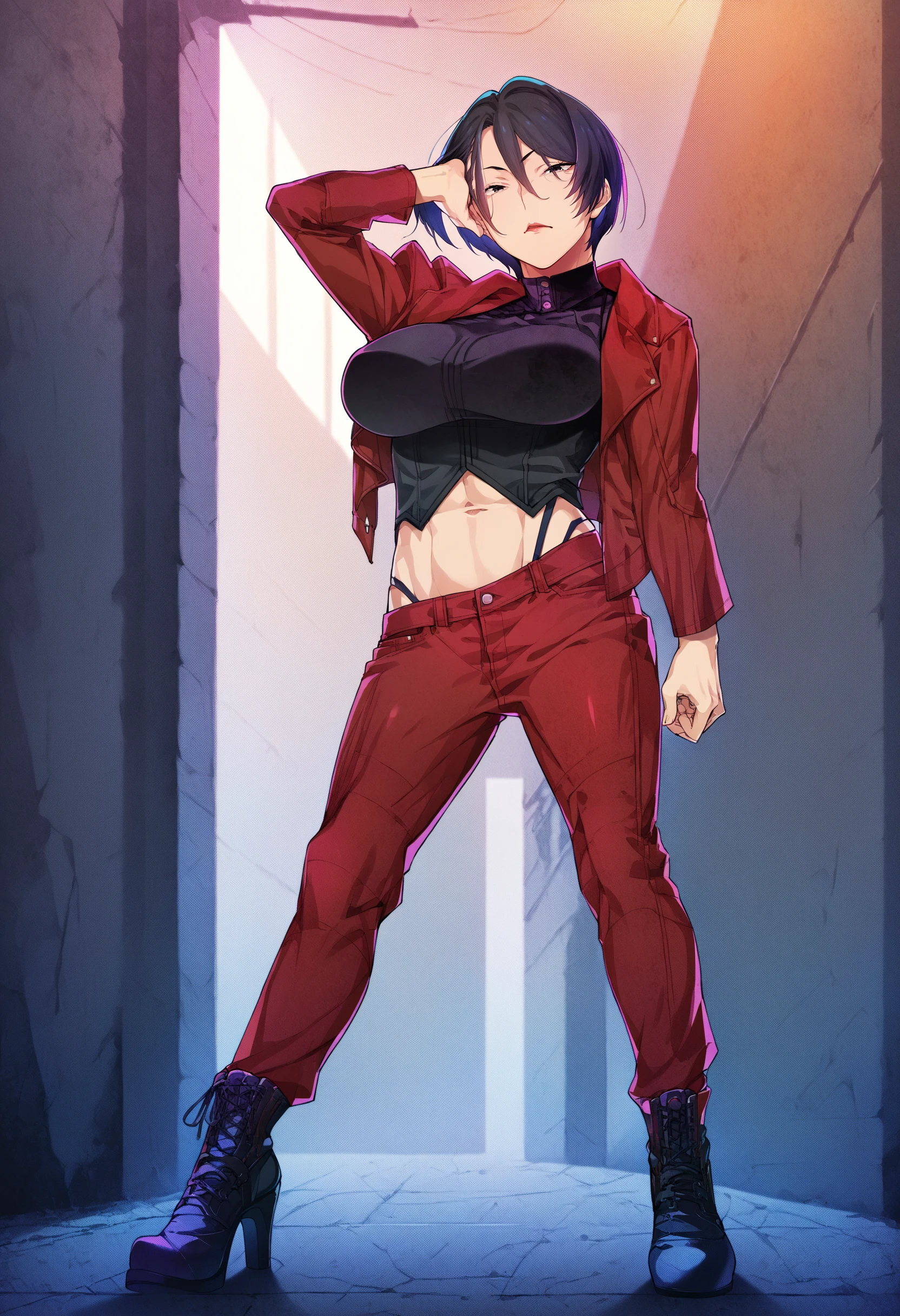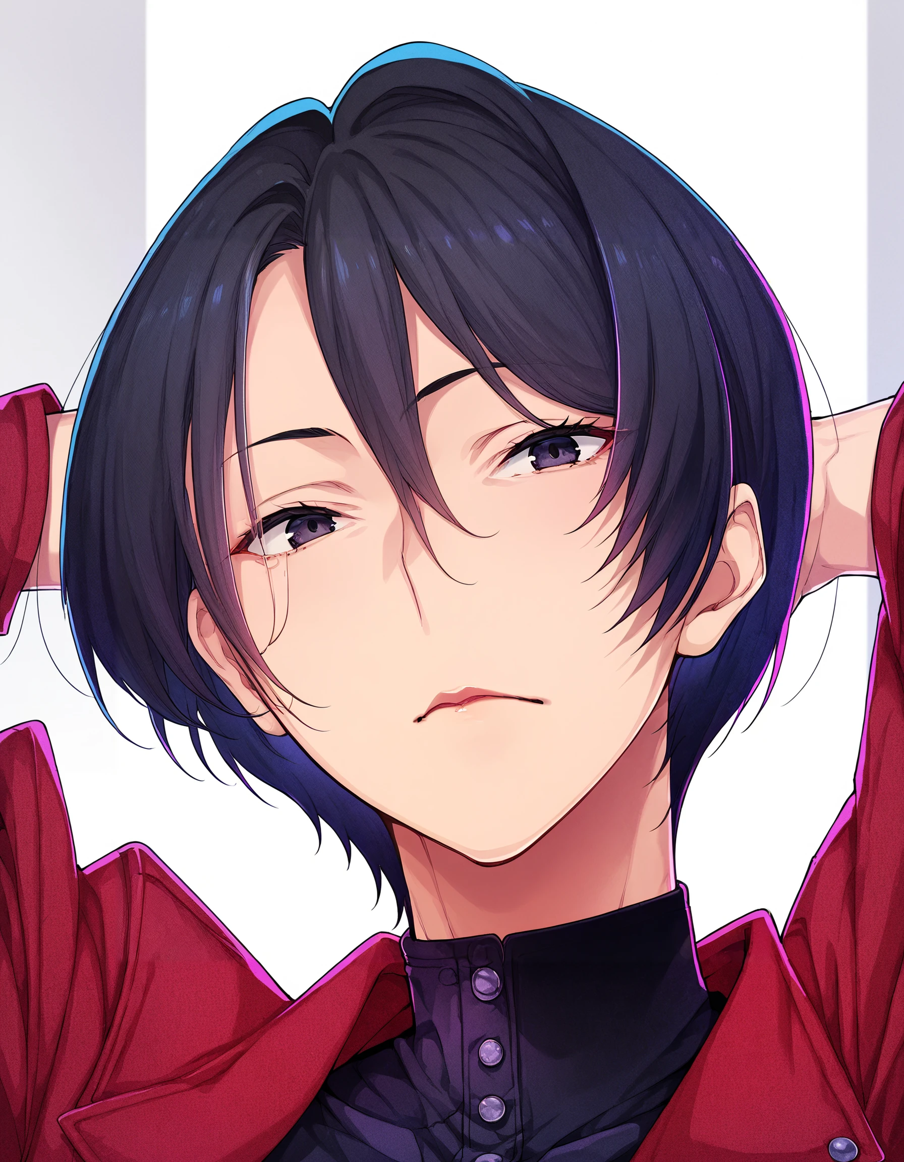 Default Look: short hair, black hair, hair between eyes, bangs, black eyes,