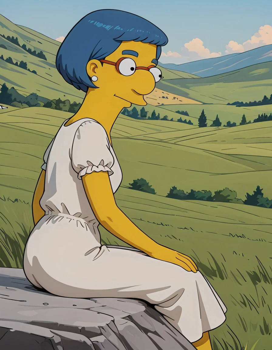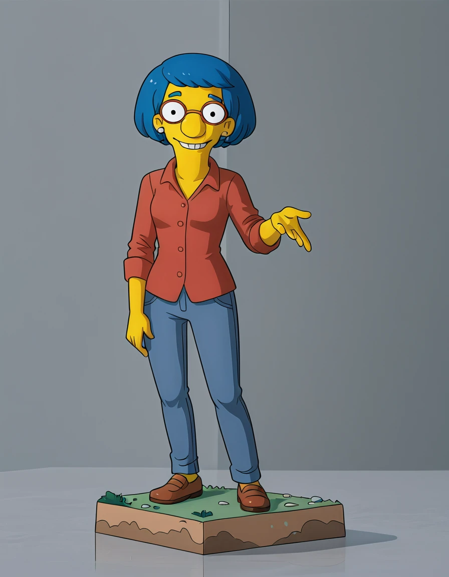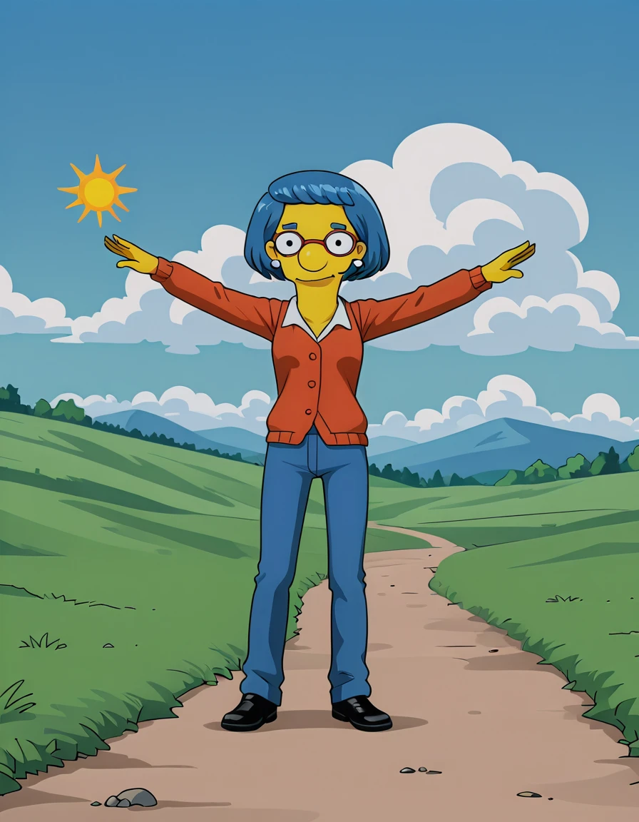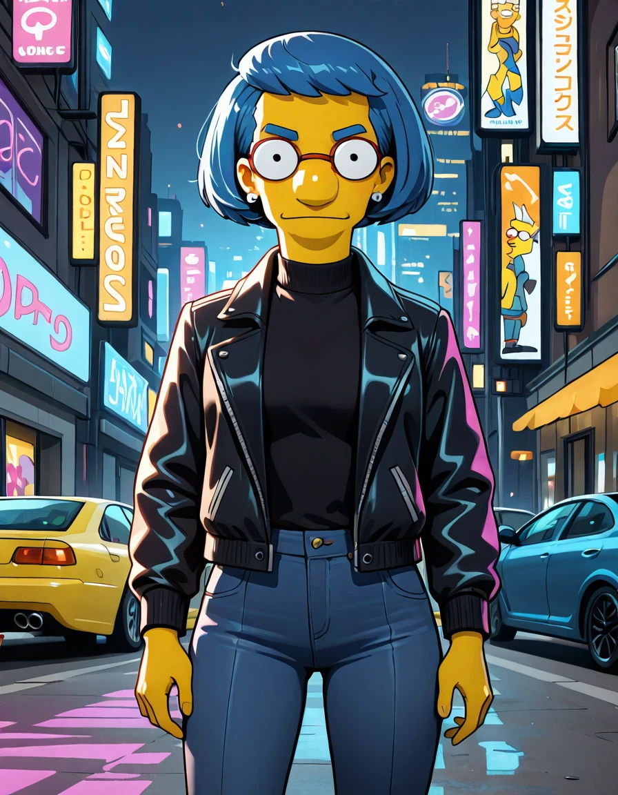 base prompt: luann_simpsons, blue hair, glasses, short hair, earrings,