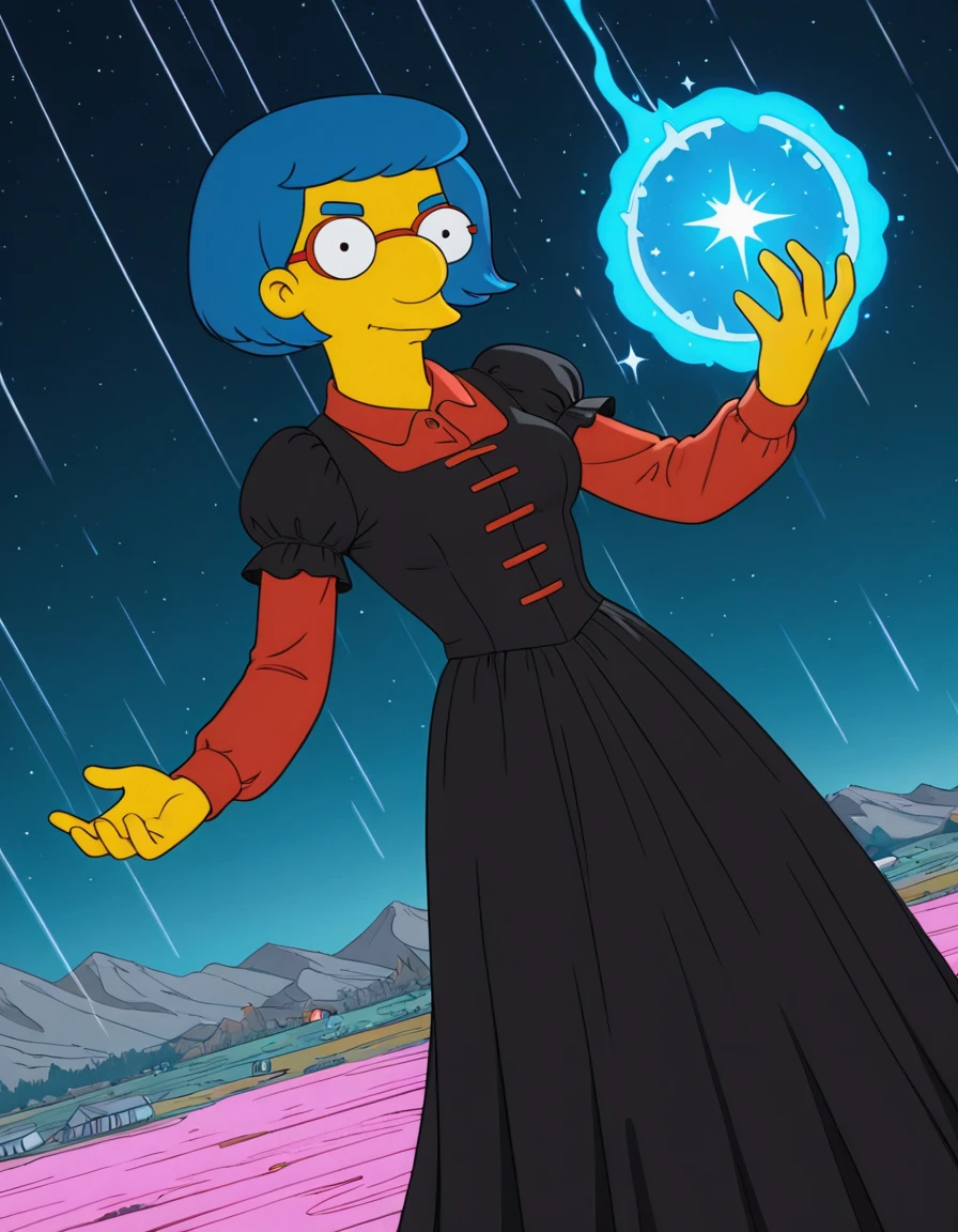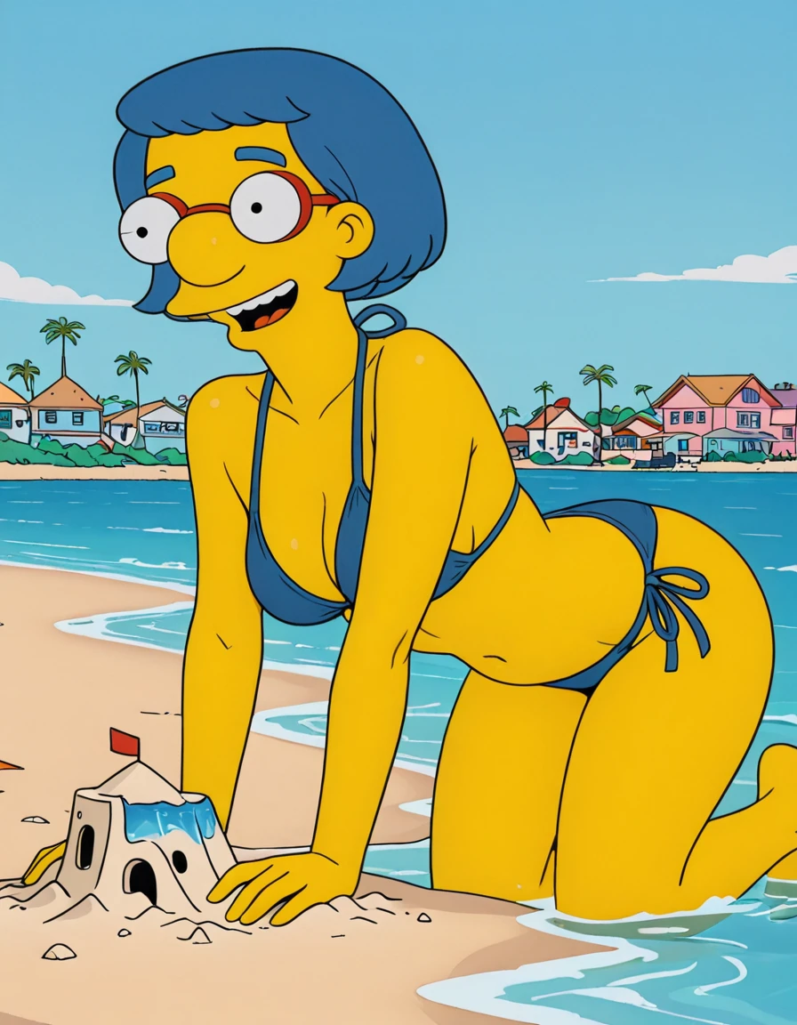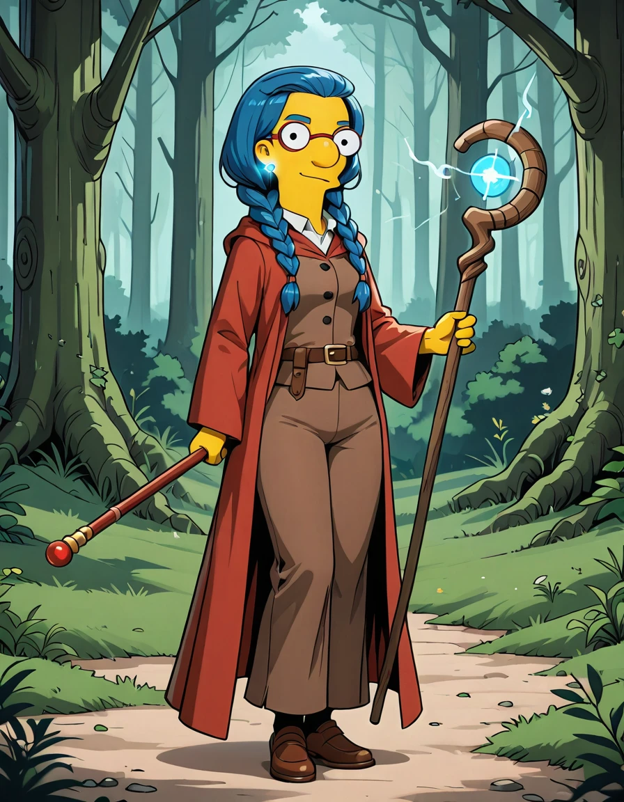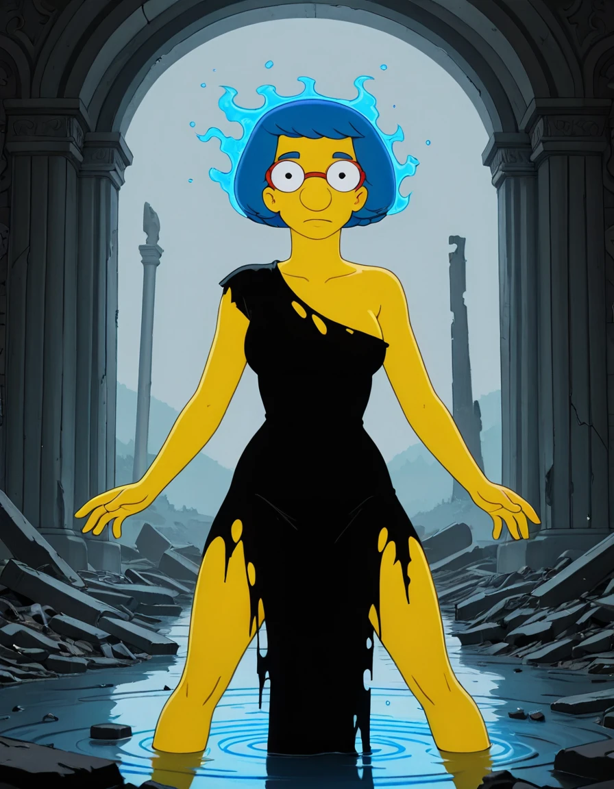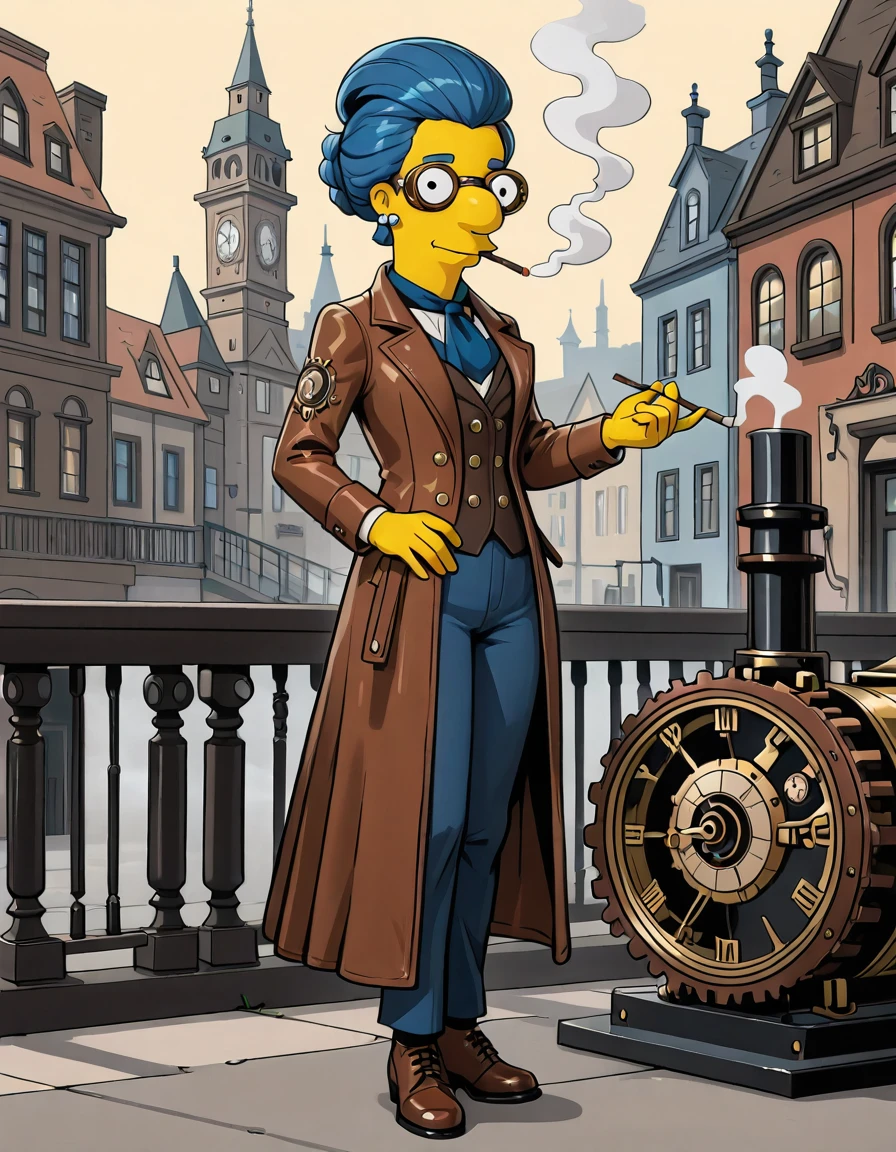 base prompt: luann_simpsons, blue hair, glasses, short hair, earrings,