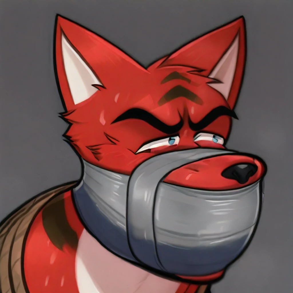 Solo, furry, long snout, frustrated expression, annoyed, thick tape gag, tape over mouth, wrapped tape gag, tape around snout, tape wrapped tightly around muzzle, huge flaring nostrils, side view, profile view, many layers of duct tape, 4K, struggling