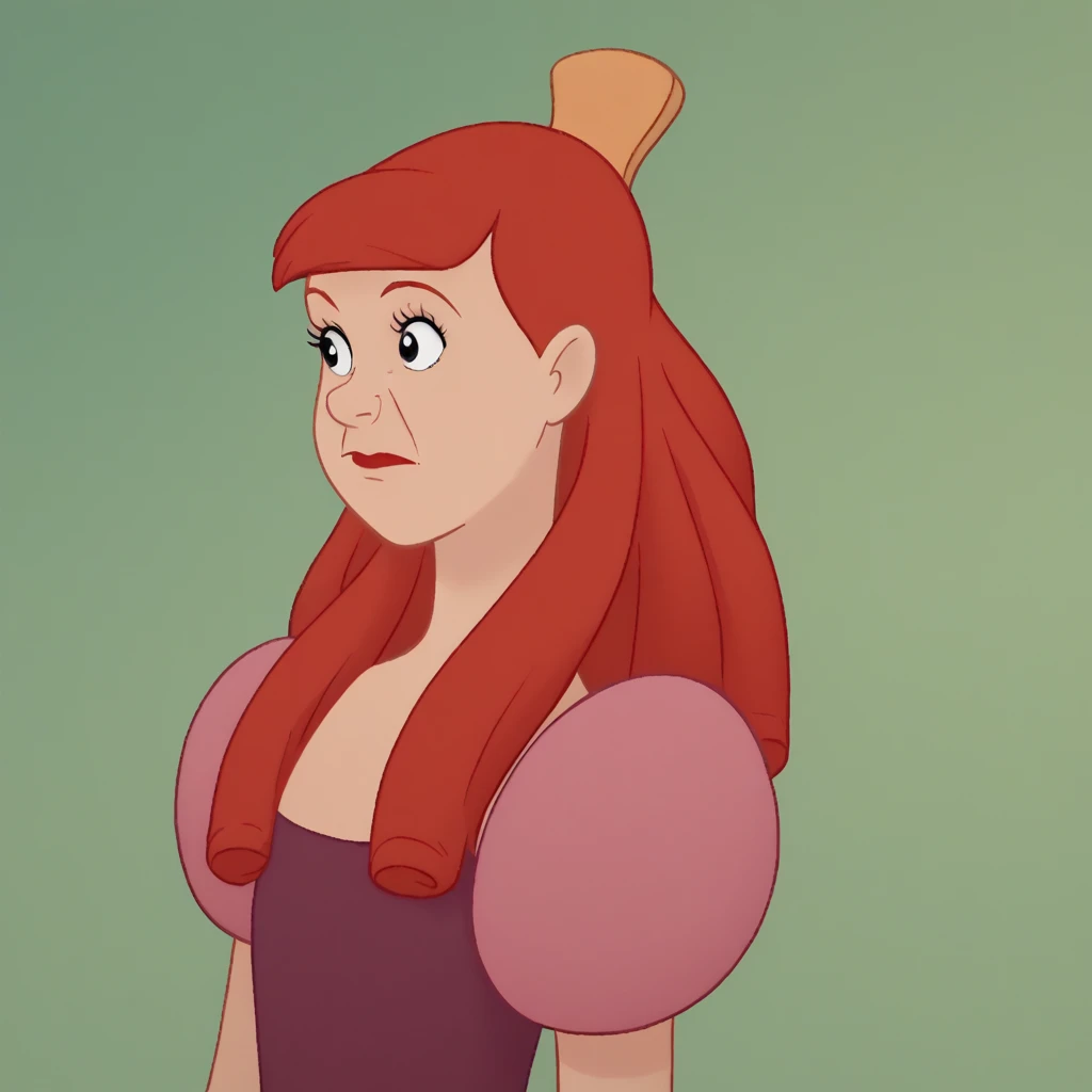 AnastasiaTremaine, 1girl, solo, red hair, long hair, black eyes, lipstick,