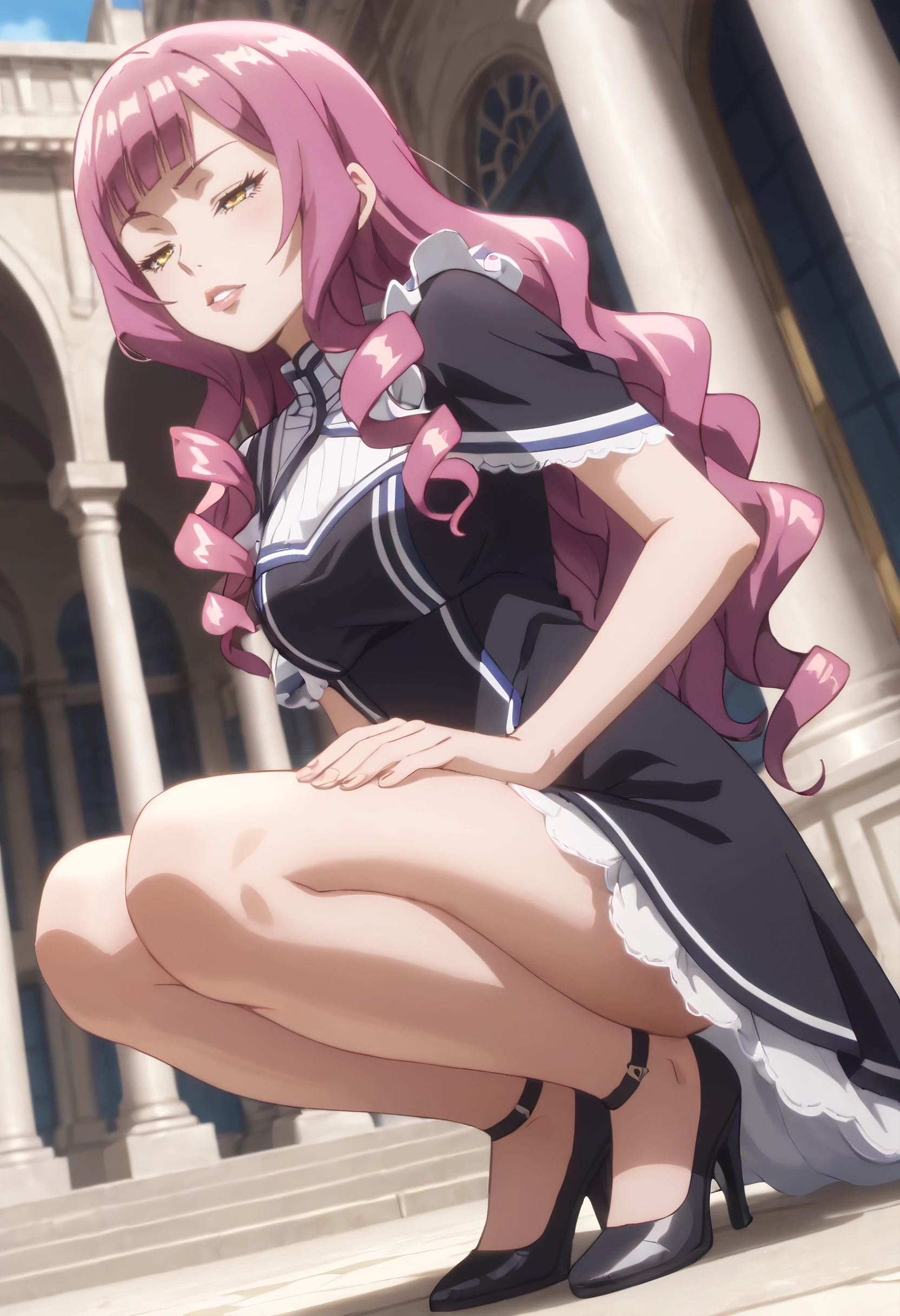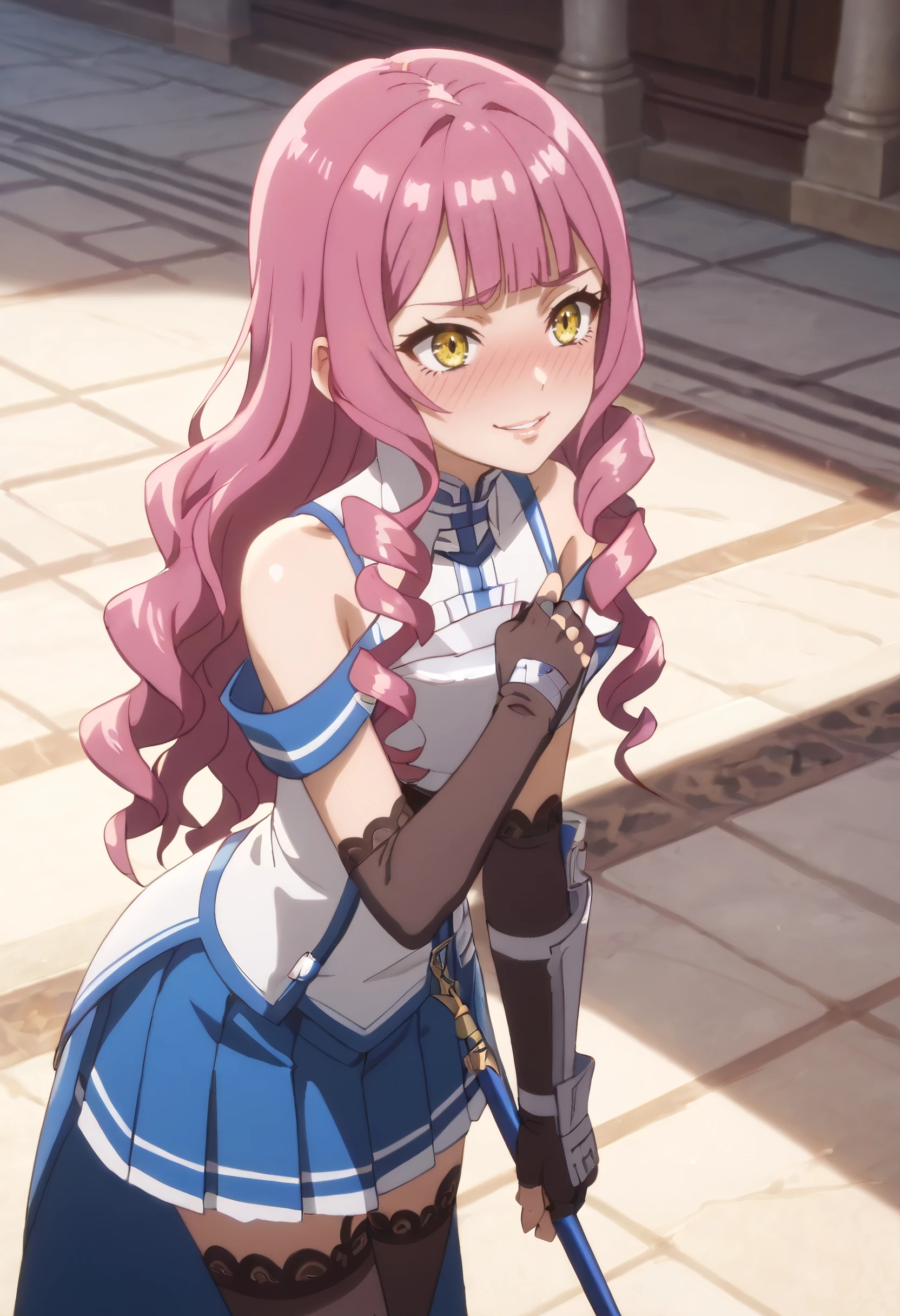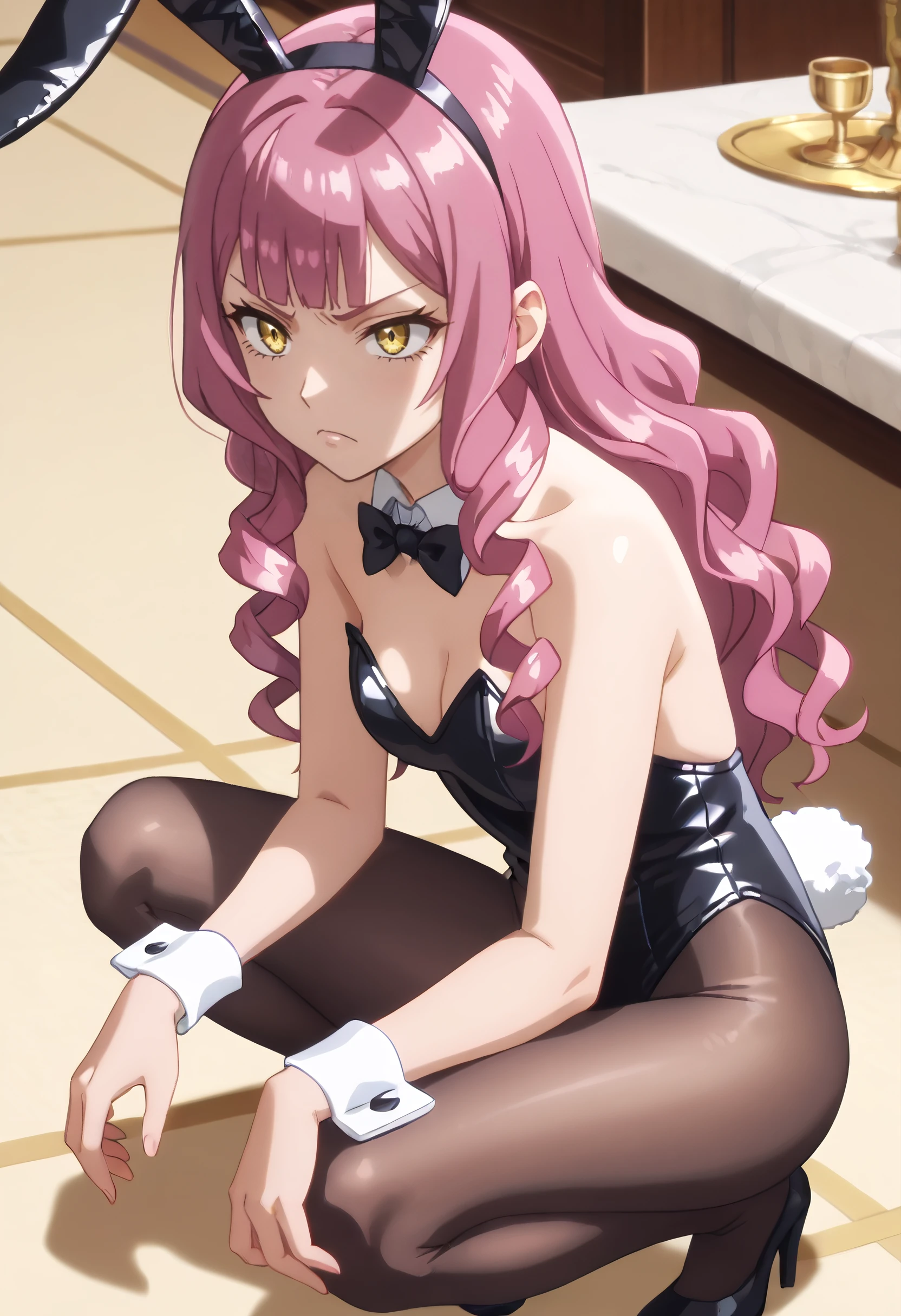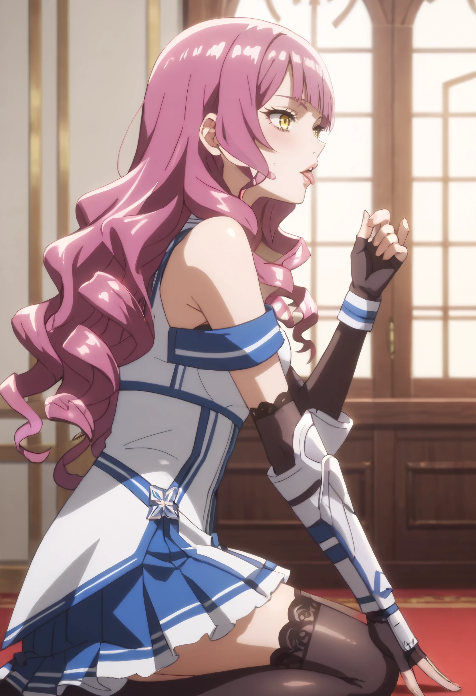 BNBMemil, long hair, yellow eyes, bangs, drill hair, pink hair, very long hair, blunt bangs, curly hair, wavy hair, multicolored hair, purple hair,