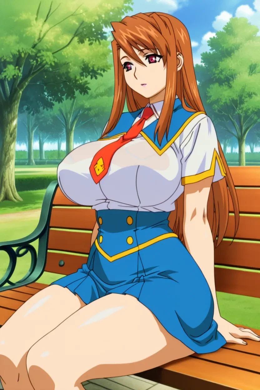 1girl Seiryu Tenmyoin (AB), red eyes, long hair, brown hair, hair between eyes, hot body wide thick thighs wide hips slender waist very endowed, blessed with very big breasts, huge_breasts, large breasts, voluptuous body, HD, High Resolution, 4k, crystal clear detail