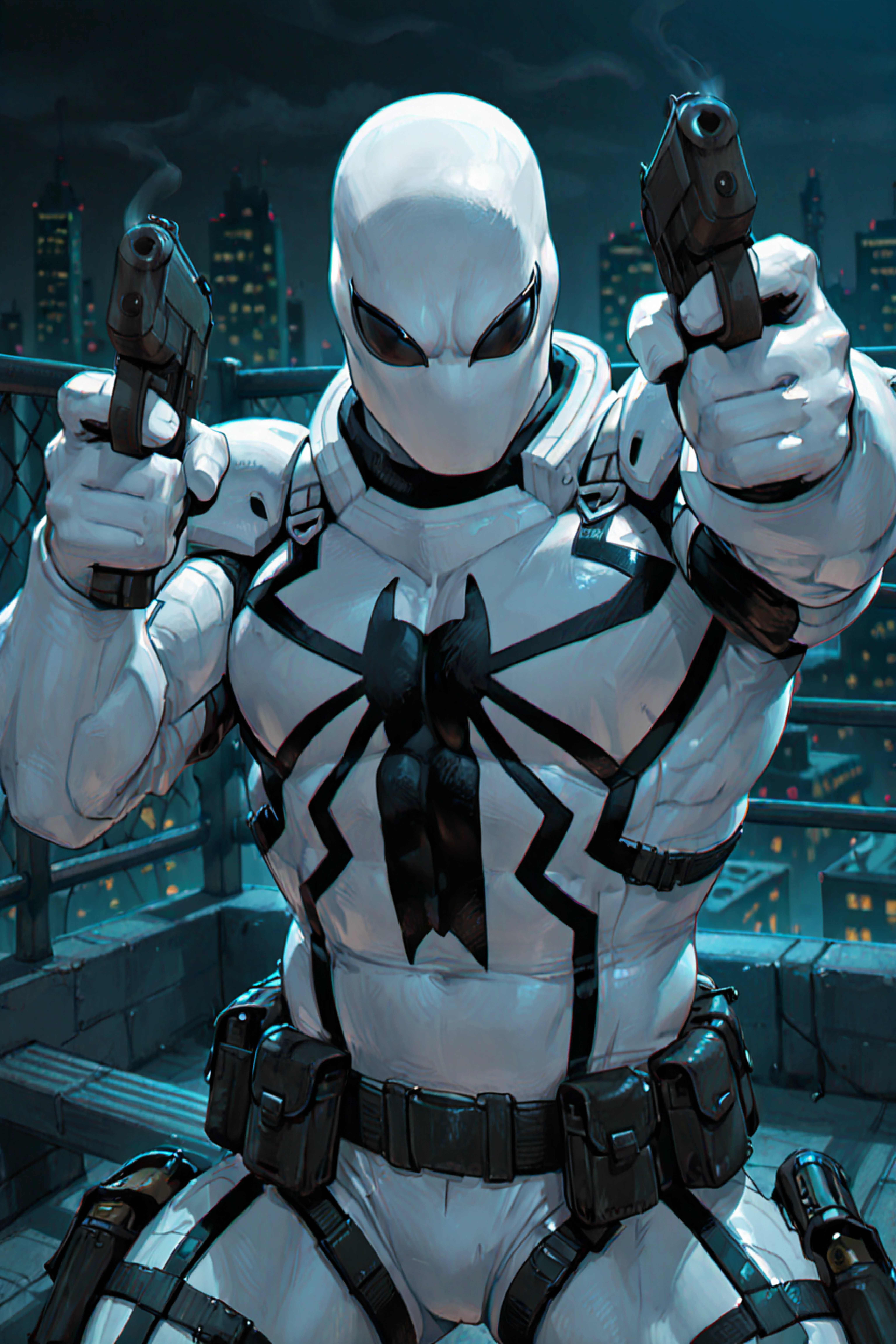 1boy, solo, male focus, mask, white bodysuit, white pouch, western comics \(style\)