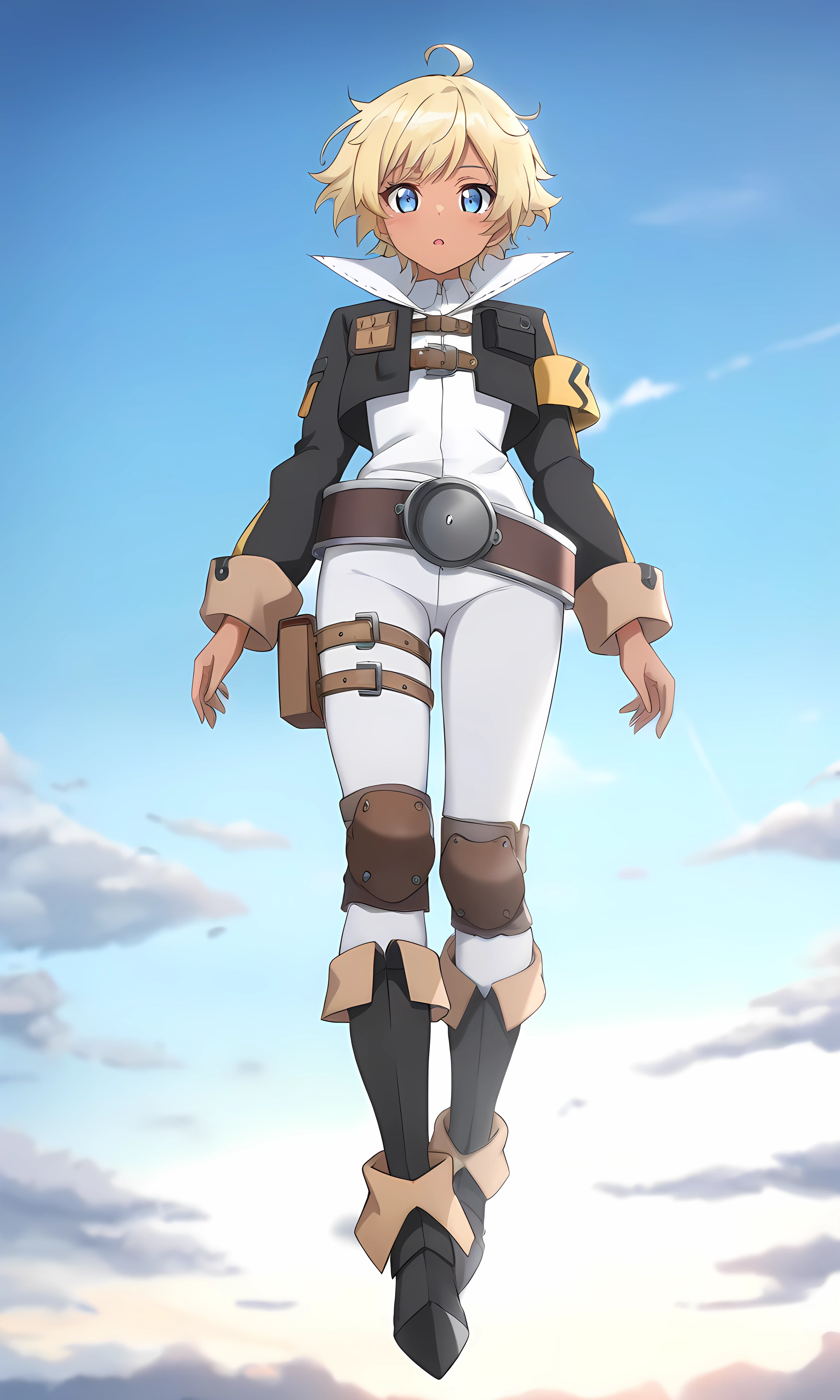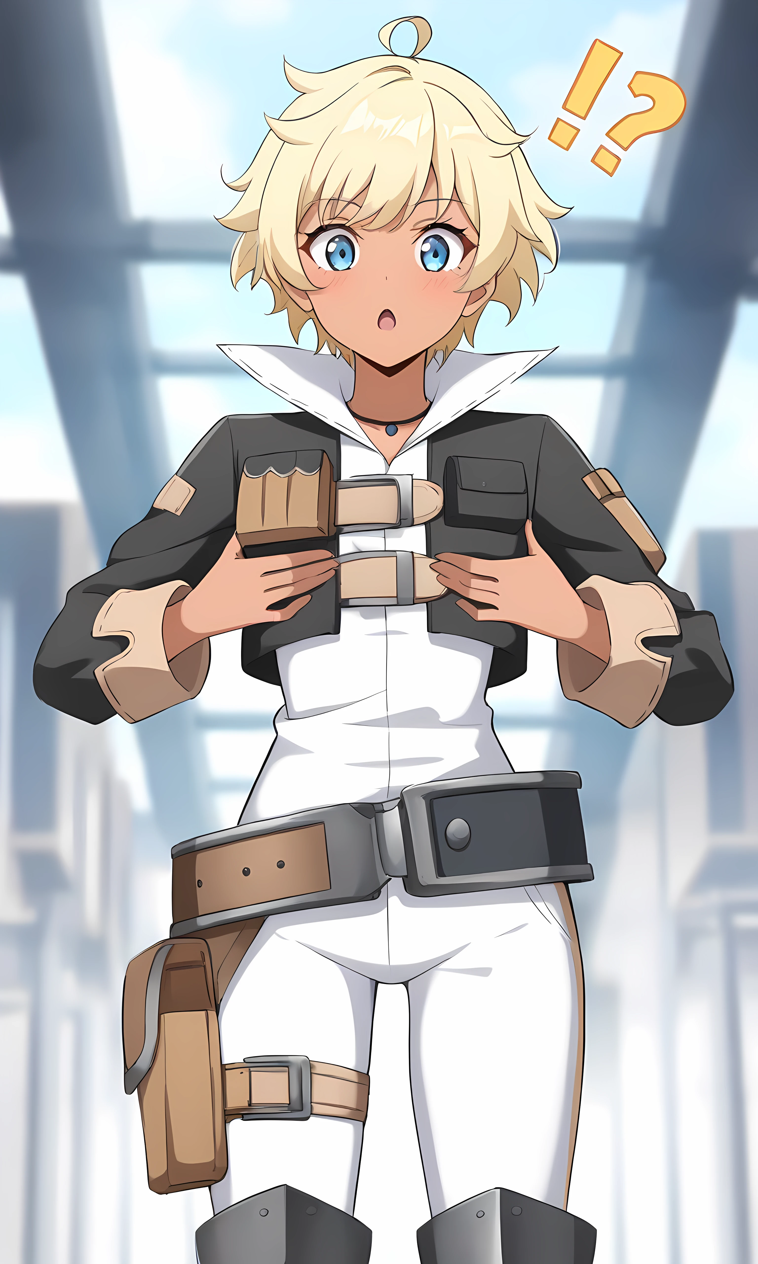 lightning_rtw, 1girl, solo, blonde hair, short hair, messy hair, ahoge, blue eyes