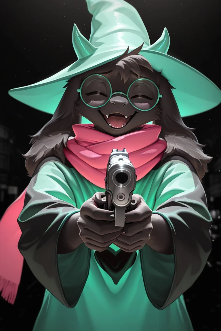 ralsei, furry, anthro goat, horns, glasses, scarf, green robe, witch hat, (black fur or white fur), (male or female)