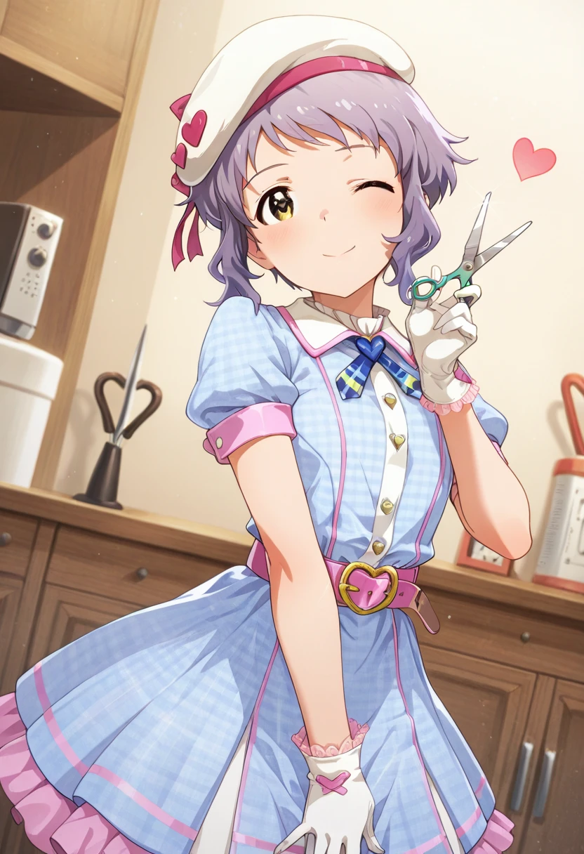 Trigger Words: makabe mizuki, short hair, yellow eyes, purple hair
