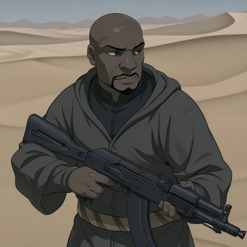 AbuR,dark-skinned,male,bald,facial hair,arabian clothing,