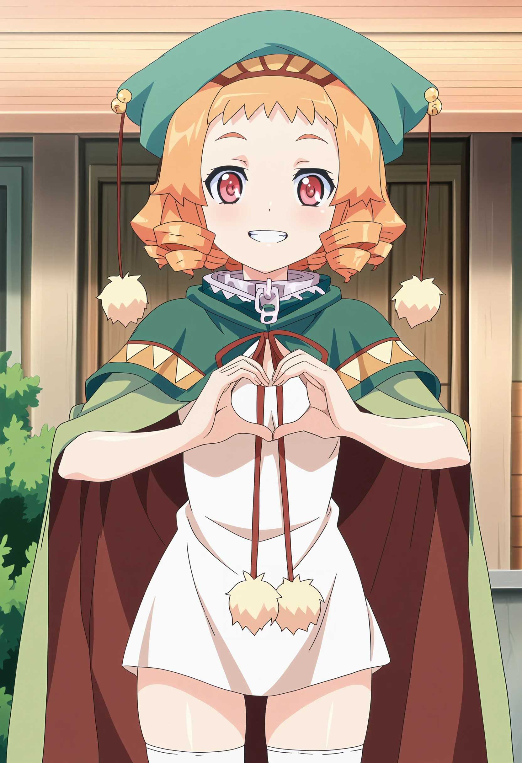 Luu Luu (character) | orange hair, drill hair, small breasts, red eyes, | cape, hat, thighhighs, maebari | axe