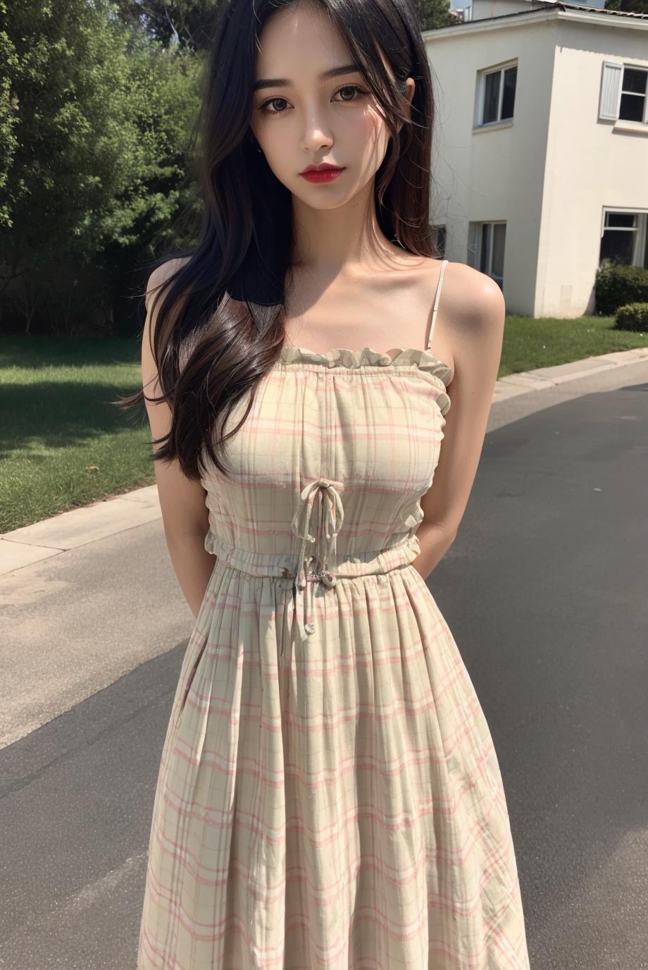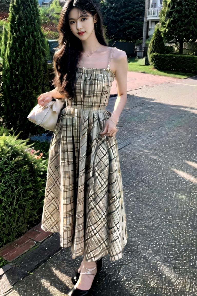 “dress”是触发词,但同时你也可以尽情编辑它,比如 "plaid dress", "printed plaid dress", "printed blue/yellow/white/green dress"等等