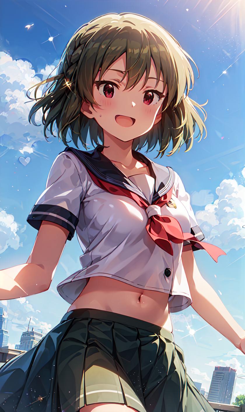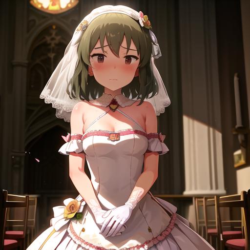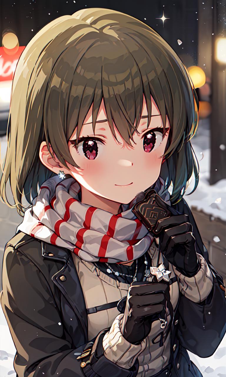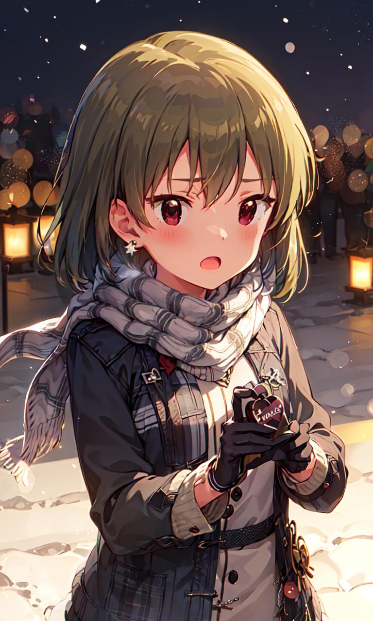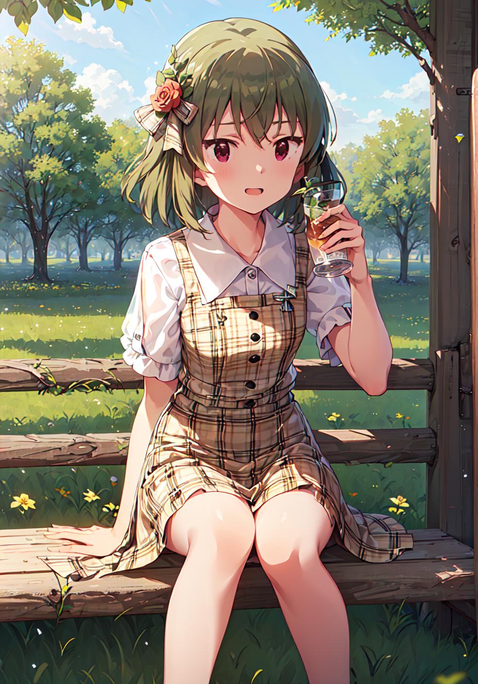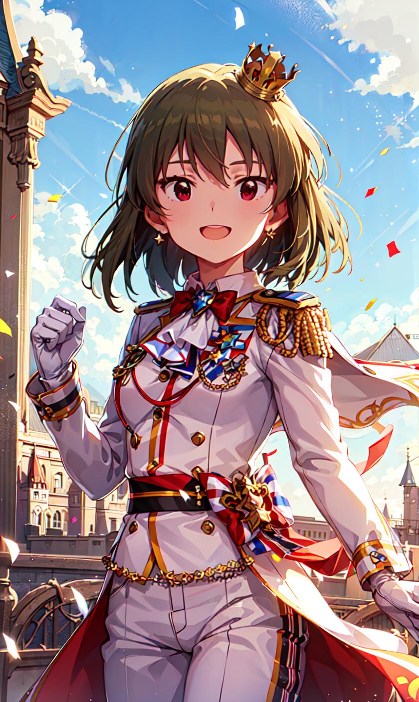 示例图的LoRA权重为0.85,您也可以尝试其他权重值。权重越大,角色风格越接近游戏《偶像大师 百万现场 剧场时光》(MLTD)游戏卡面以及该游戏发行后新绘制的立绘。所有训练数据皆来自于官方素材(例如MLTD卡面和星耀季节立绘)