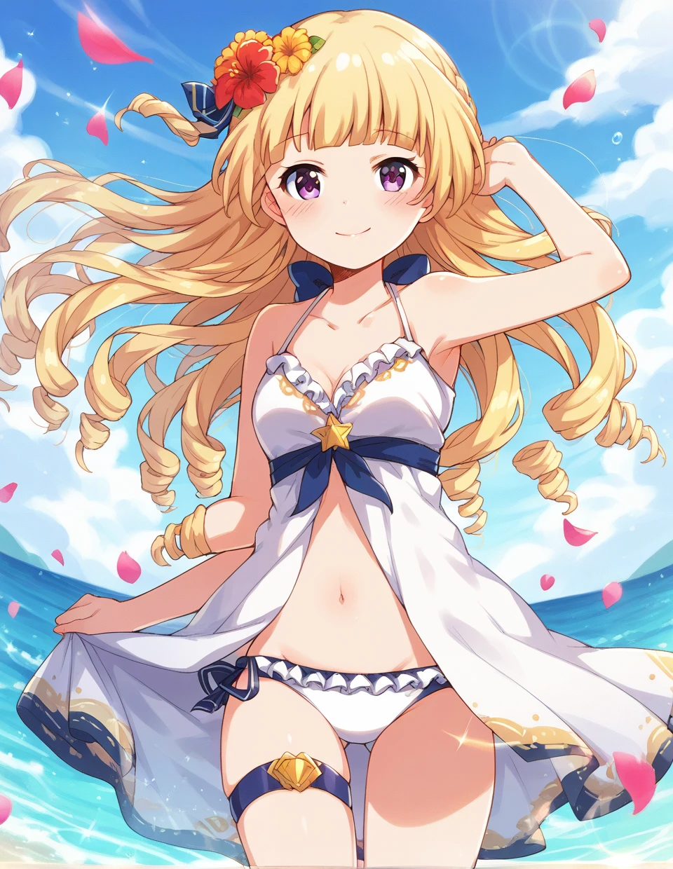 Recommended:purple eyes,blonde hair,drill hair,hair bow