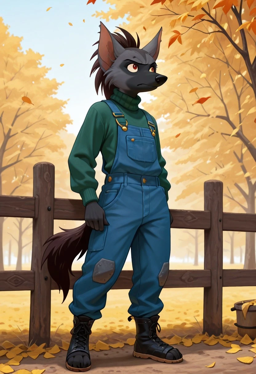 Prompt: Mjomba, furry, male, aardwolf, old, grumpy, thick black unibrow, yellow sclera