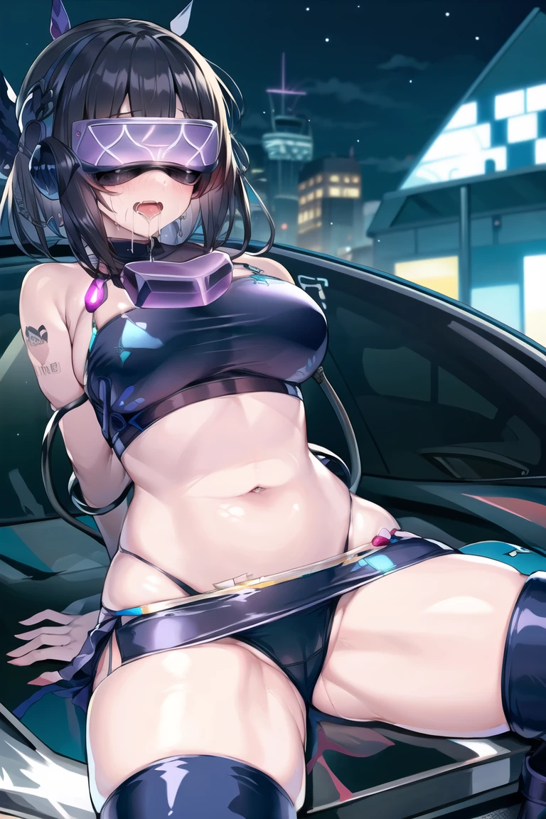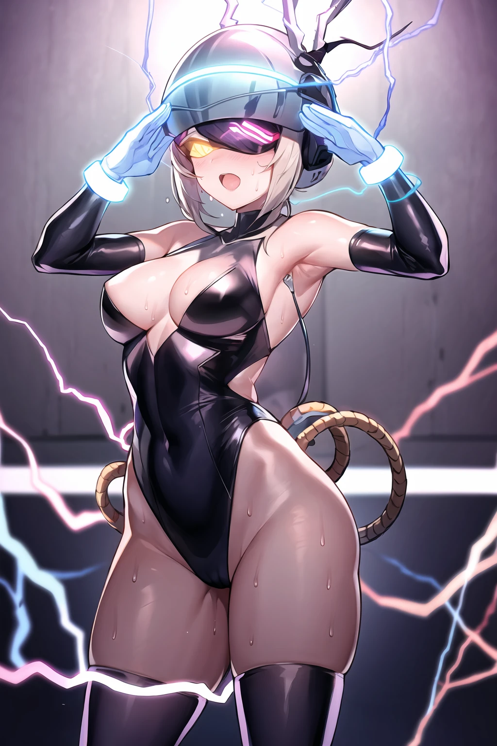 dark persona, evil grin, standing, mind control, corruption, ????? juice, tongue out, bdsm, tattoo, mask, saliva, blush, restrained, lactation, forced ??????, ??? toy, ???, ????? juice, barcode, barcode tattoo, tattoo, pubic tattoo, sweat, tentacles, piercing, cable, glowing, electricity, trembling, milking machine, heavy breathing, pubic tattoo, tube, h eadset