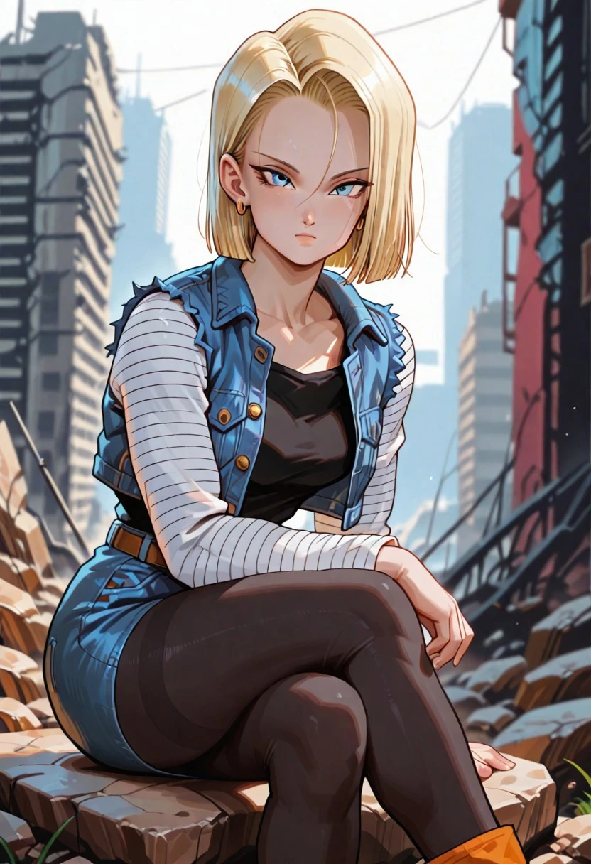 android18, 1girl, solo, blonde hair, blue eyes, short hair,
