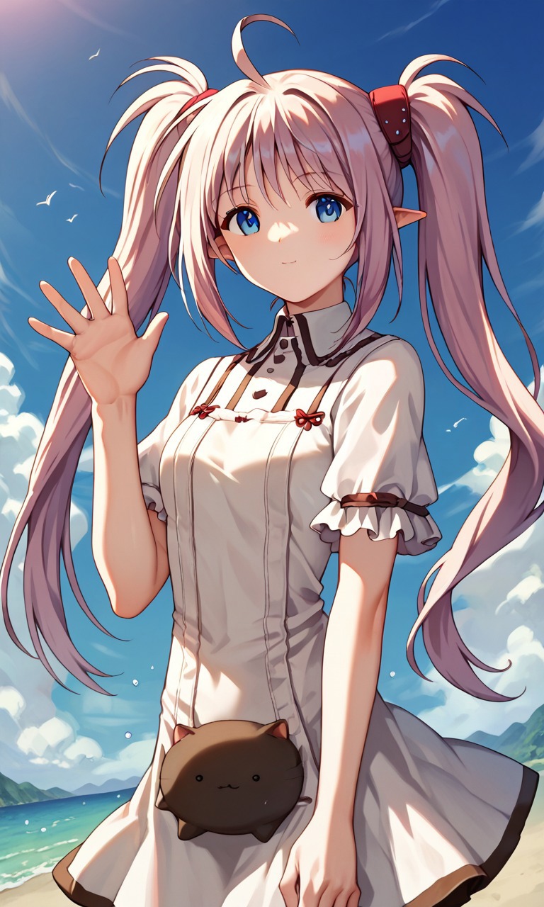 Prompts: primula, blue eyes, twintails, pointy ears,