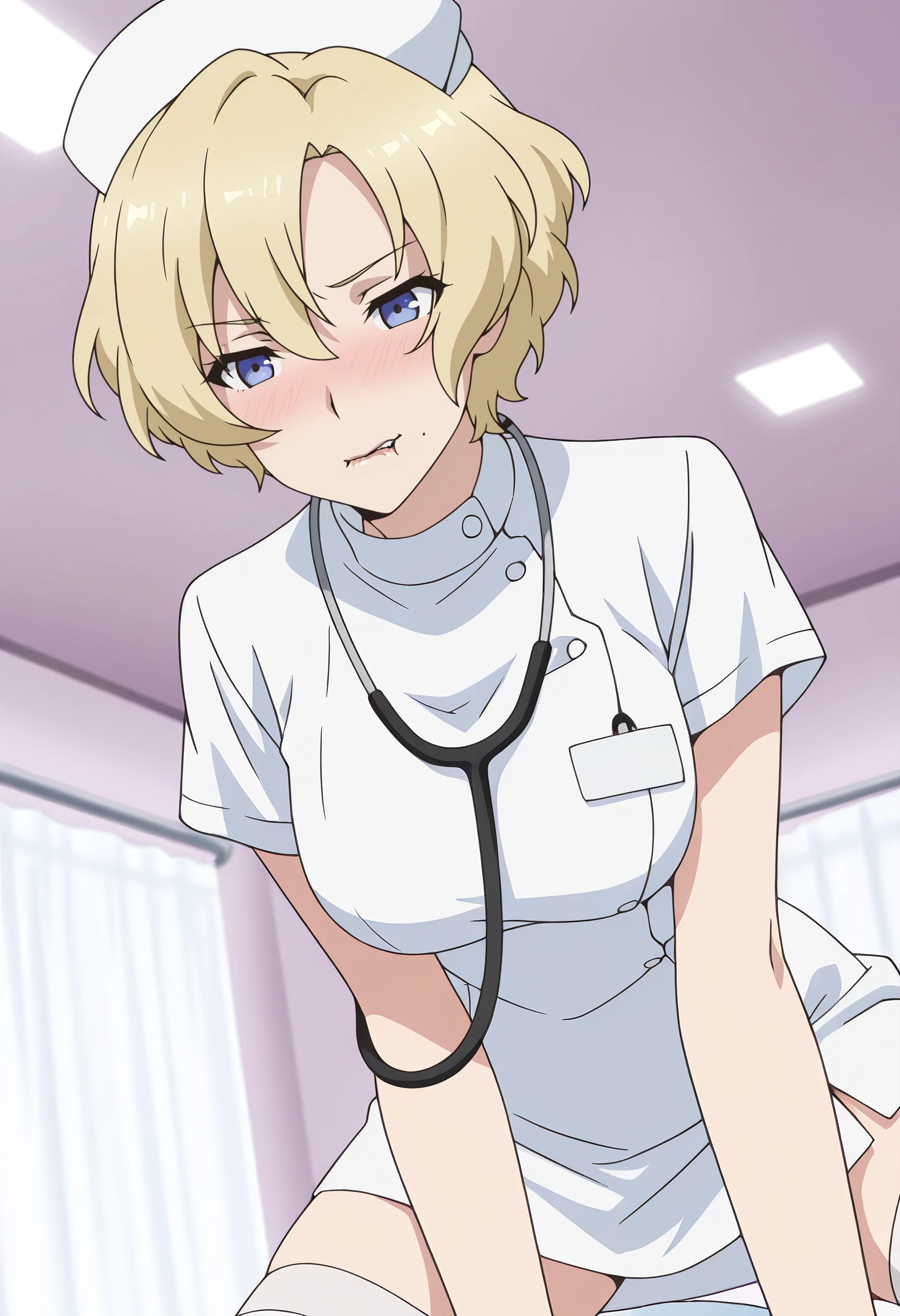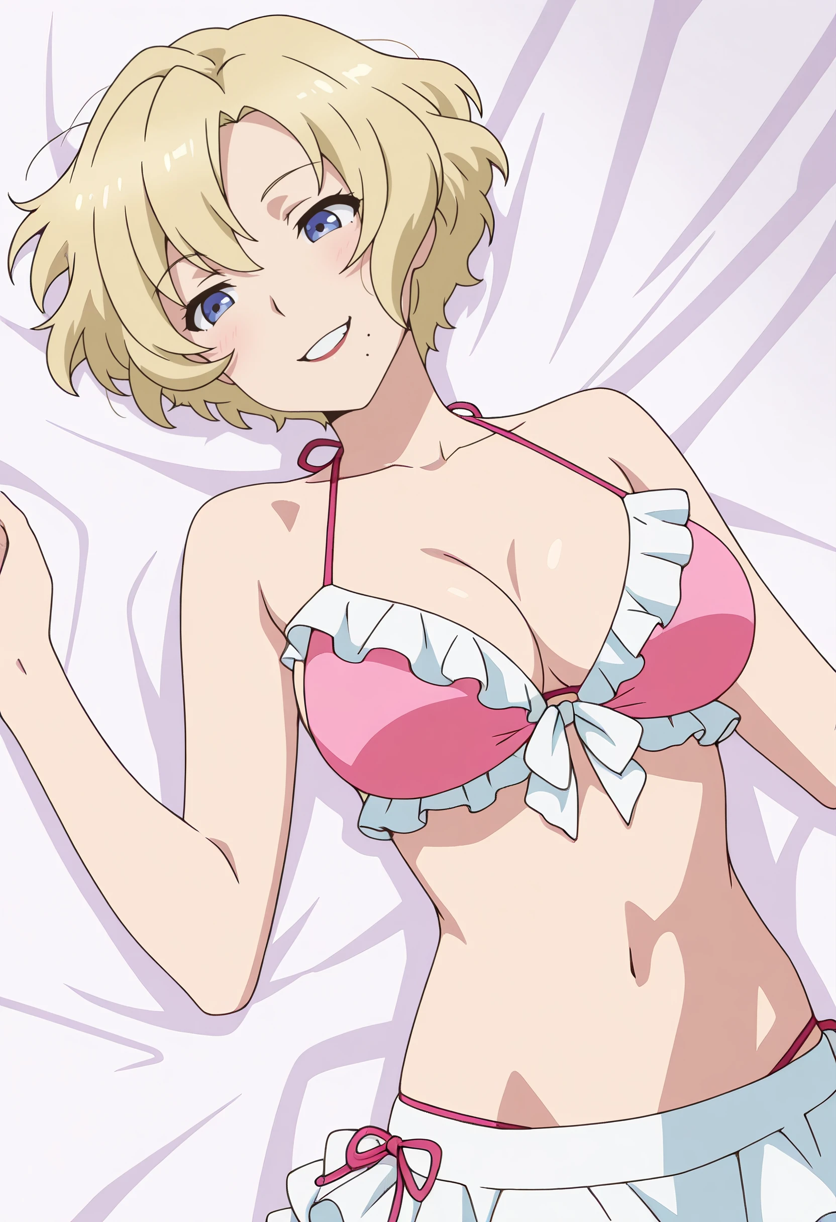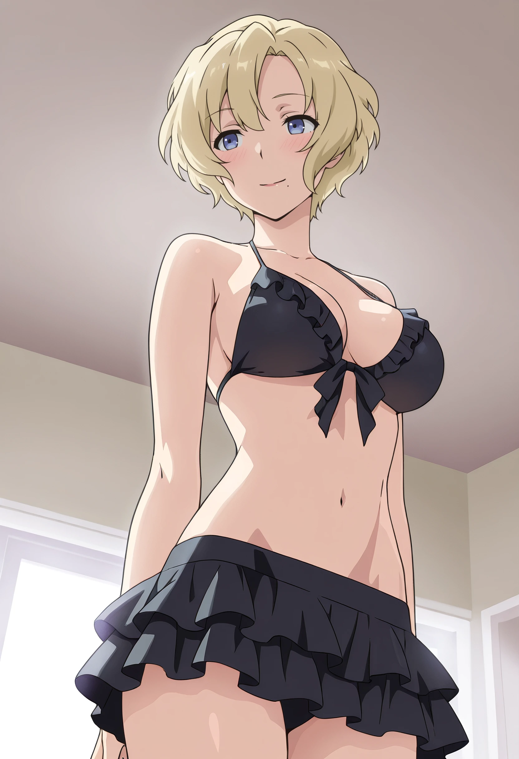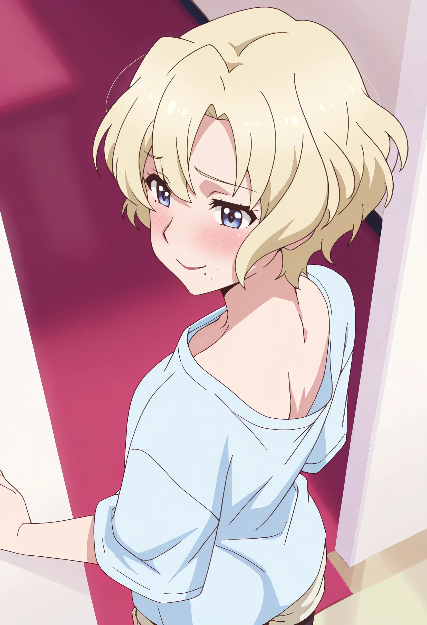 TNMJacqueline, blonde hair, short hair, blue eyes, mole, mole under mouth,