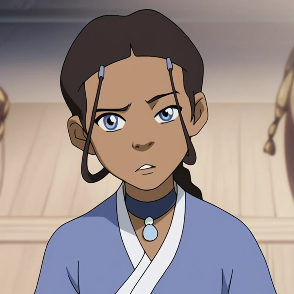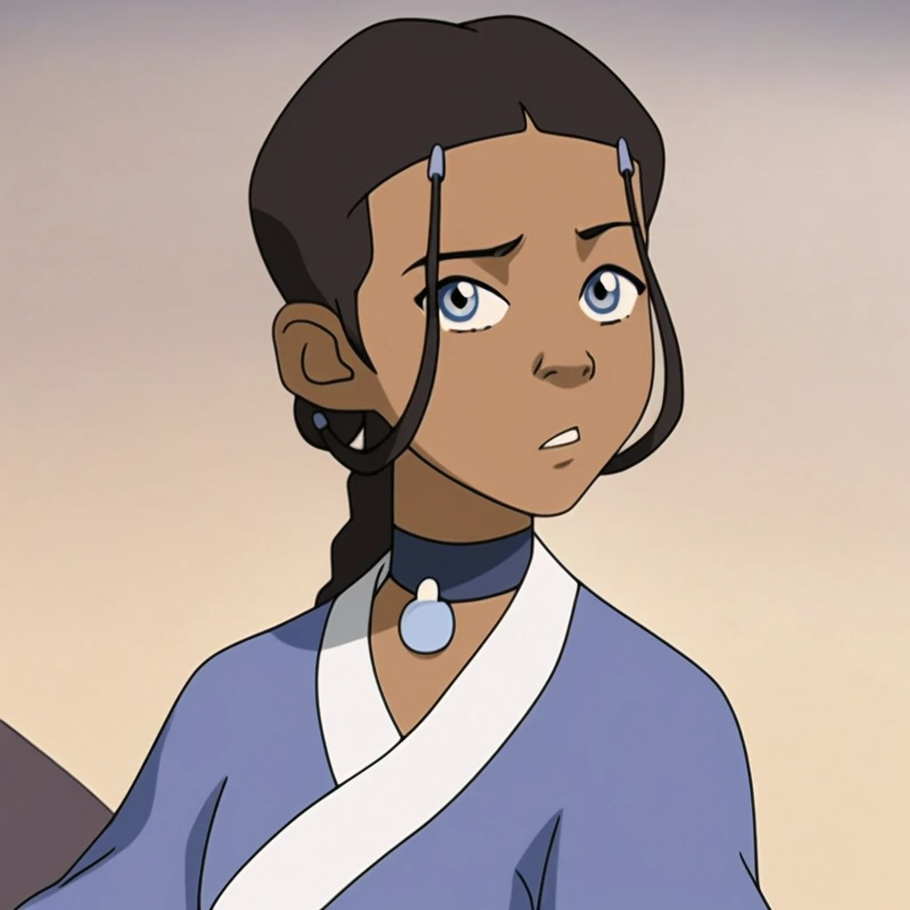 katara, 1girl, dark skin, brown hair, blue eyes, braid, blue kimono, blue chokerBig Dataset Experiment