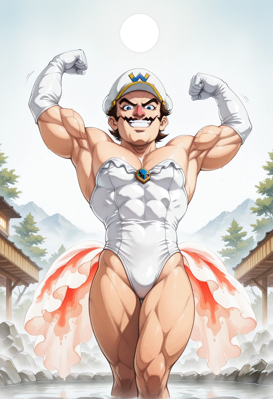 Full outfit tags: goldeen \(cosplay\), strapless white leotard, white elbow gloves, white high heels