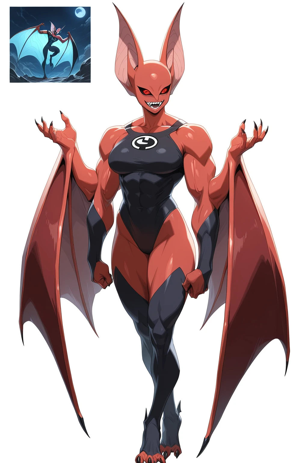 Prompts: werebat, bat ears, bat wings, bat feet, bat teeth, monster girl,