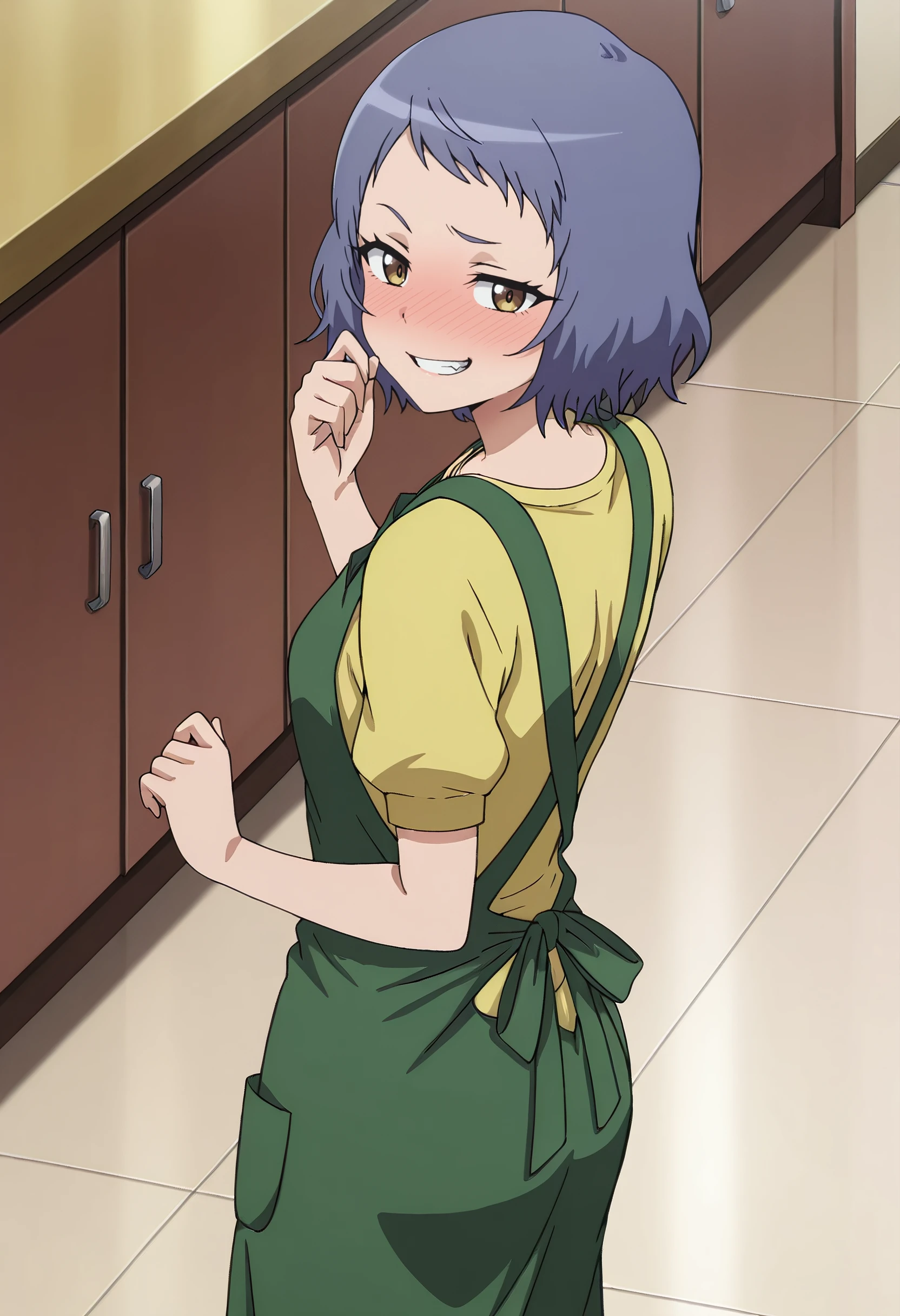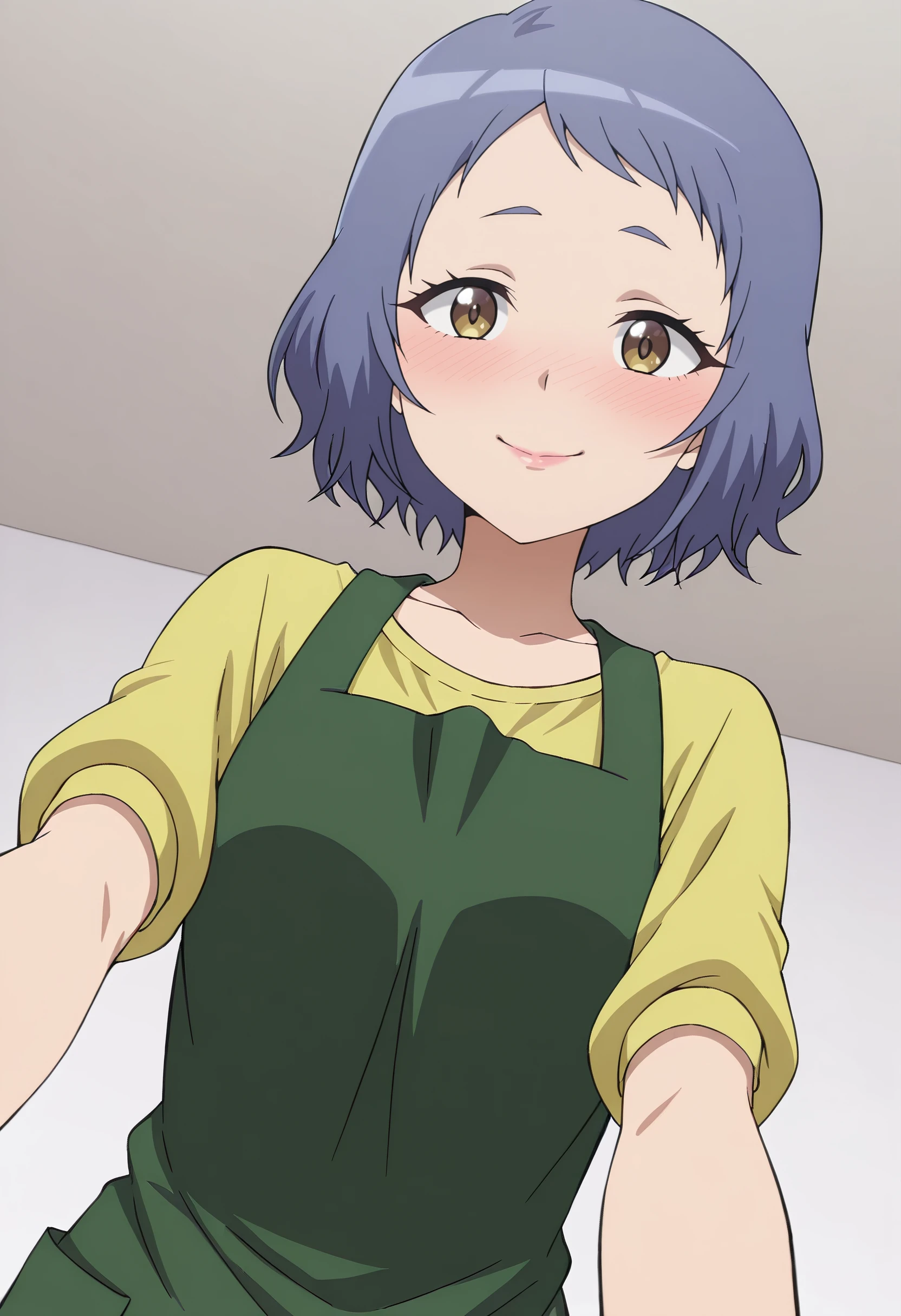 MOKFSDaughter, short hair, blue hair, brown eyes, yellow eyes, short bangs,