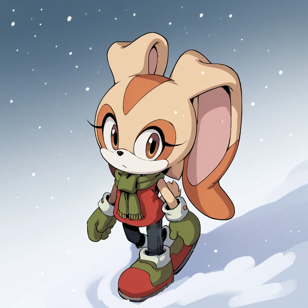 Helpful Prompt: "Cream The Rabbit, 1girl, solo, orange_dress, blue_necktie, orange_and_yellow_shoes, white_socks, white_gloves, gold_buttons, white_collar"