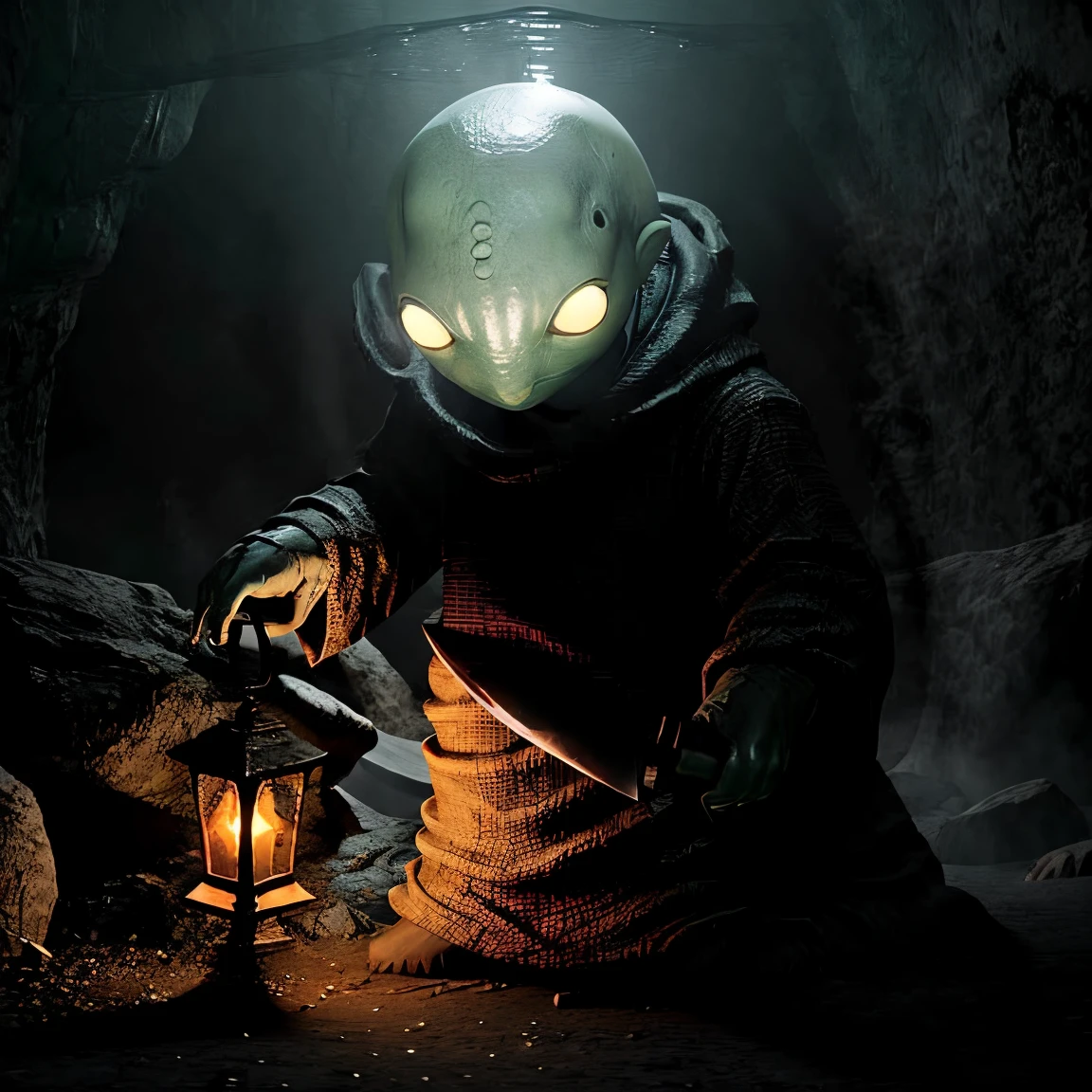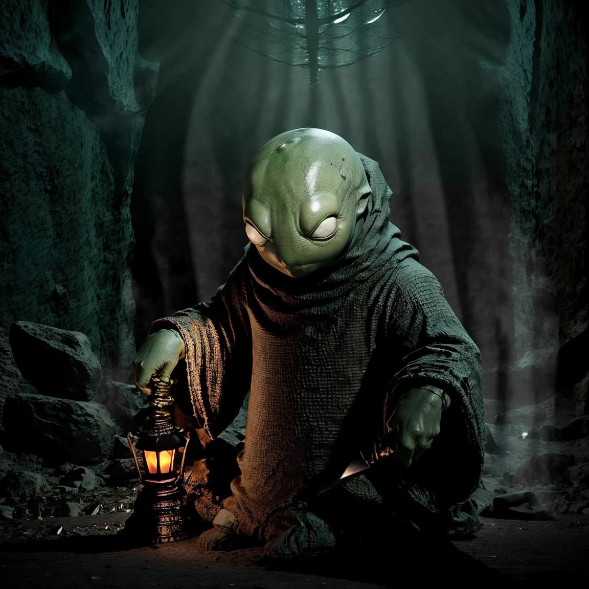 Tonberry from the final fantasy games. Sometime I am realizing is that simple characters are often the hardest. Known issues: Sometimes he gets extra eyes not sure why this is happening the training data is good. Knife and lantern: sometimes he has two knives sometimes he two lanterns more often then not its one of each.