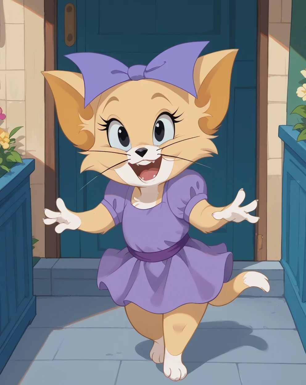 Toodles, furry, cat, yellow fur, black eyes, hair bow
