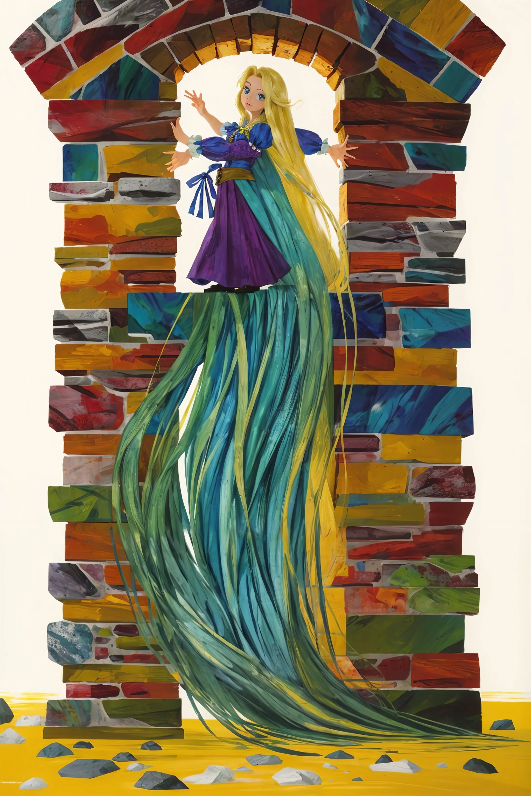 Many children's book illustrators paint collages. This results in a simple, but highly stylized image. This LoRA produces images that mimic collage paintings.