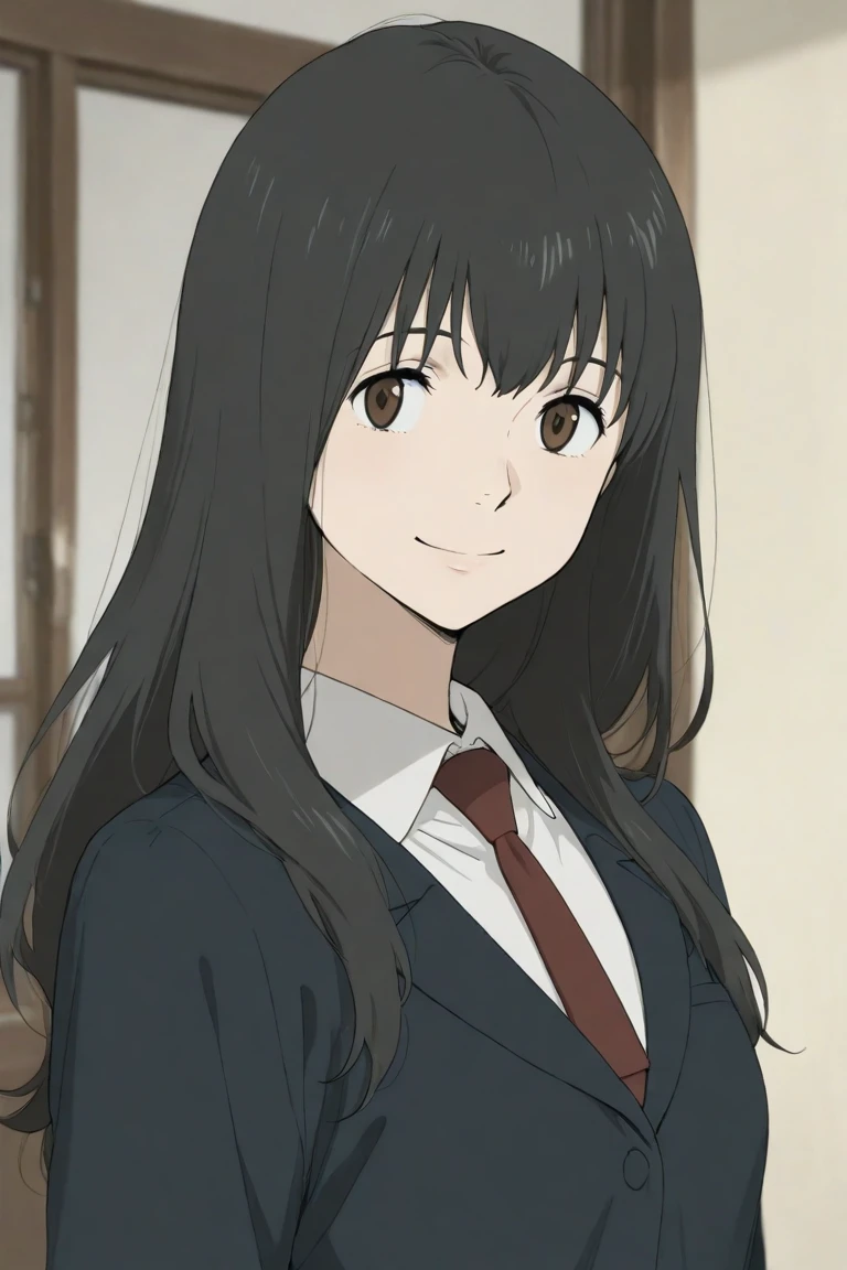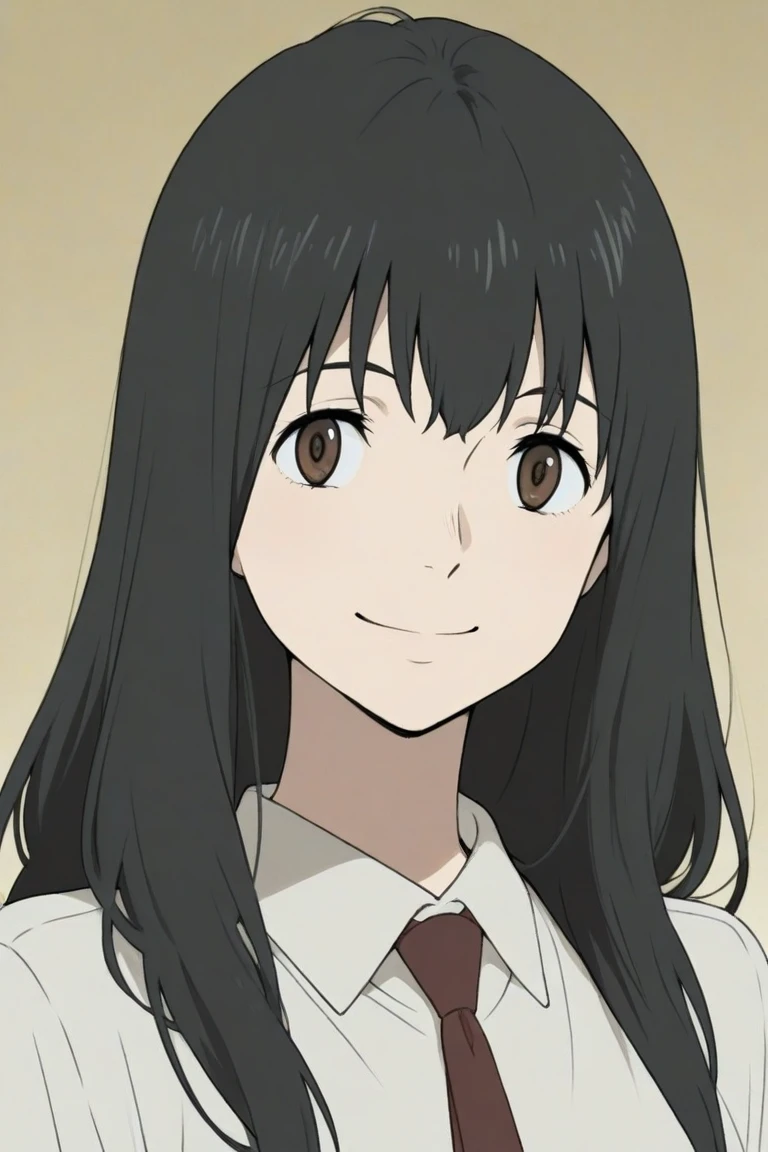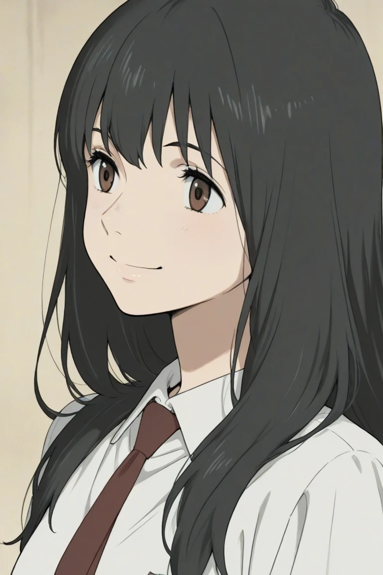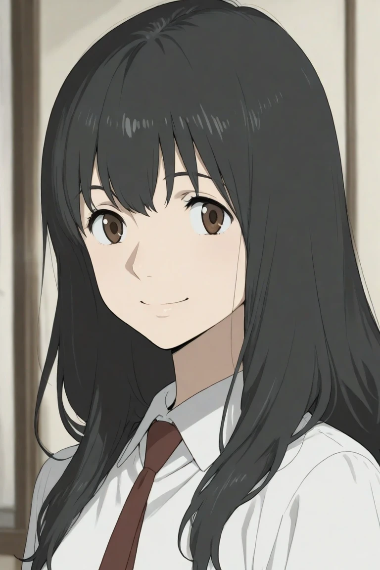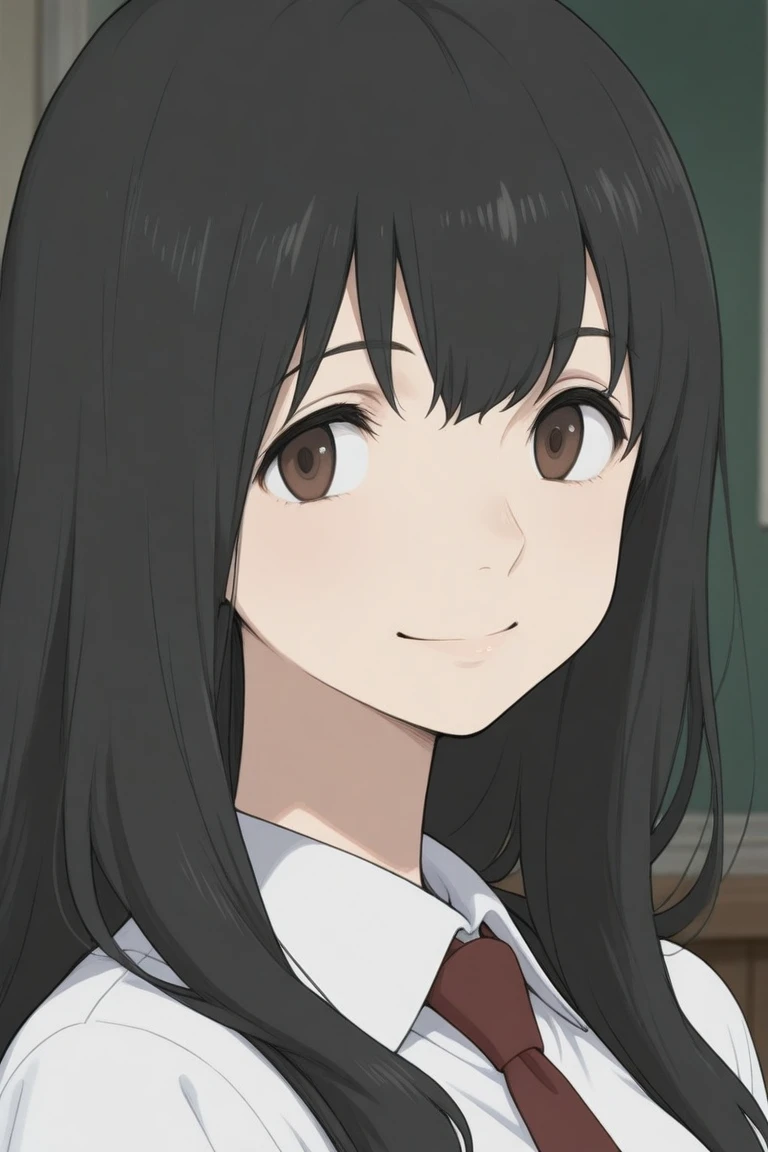 ruka_belle,black long hair,brown eyes,black long hair,brown eyes,necktie,shirt,skirt,white socks,loafers,anime coloring