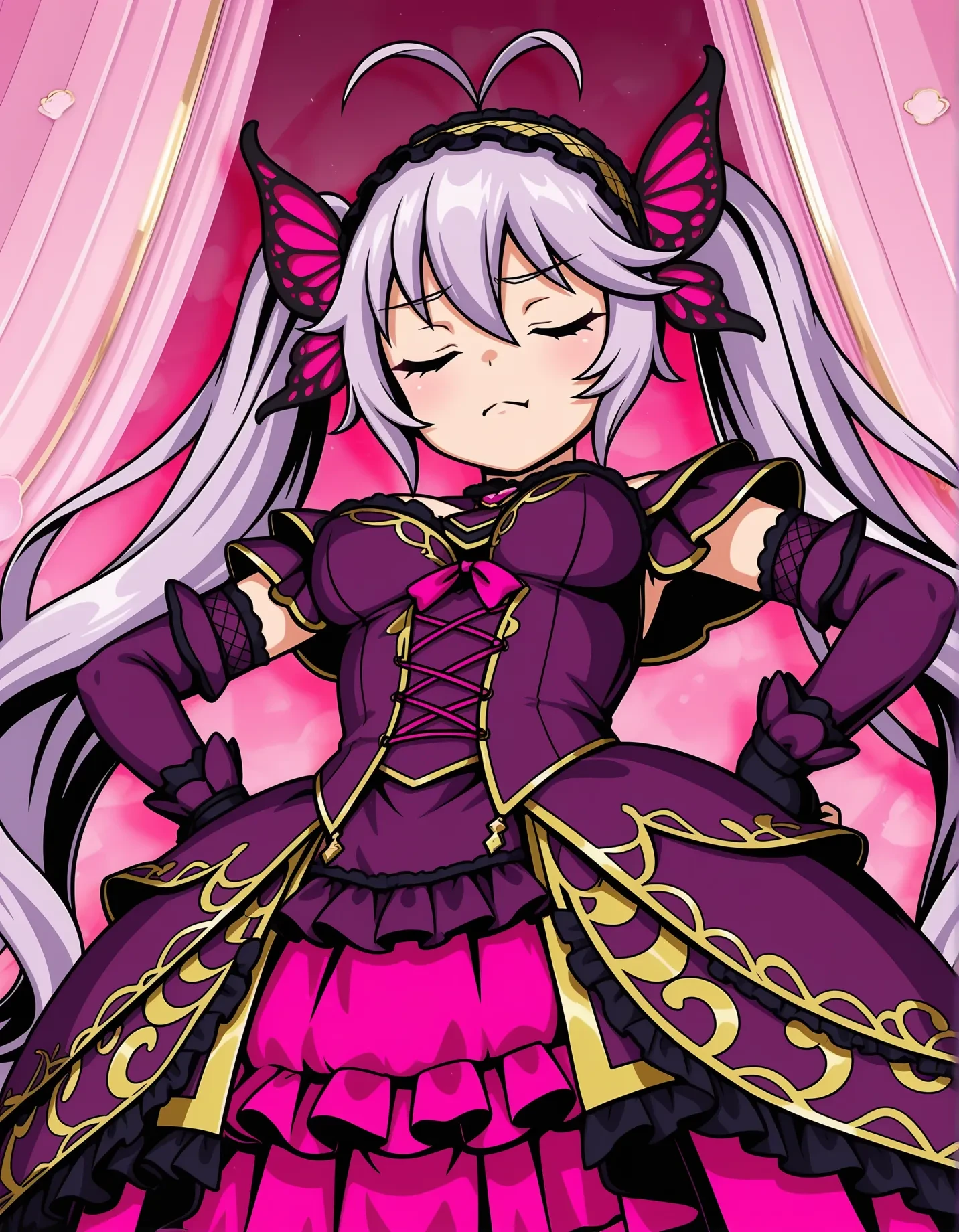 daikunogensan,ichijounagi,purple hair,long hair,hair between eyes,twintails,antenna hair,pink eyes,medium breasts